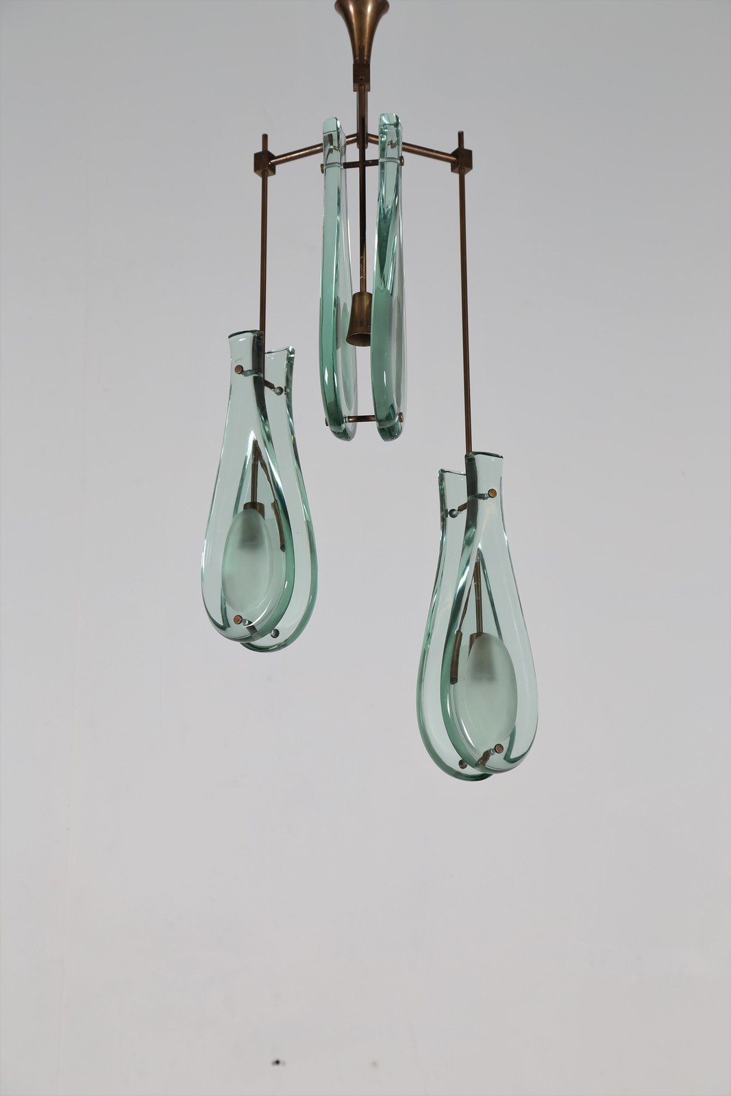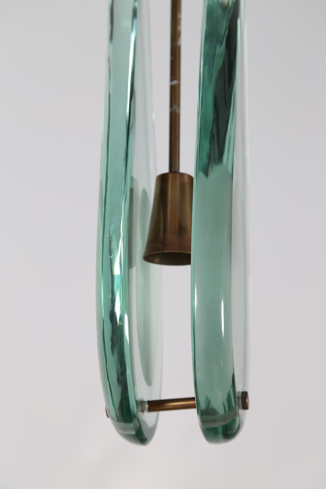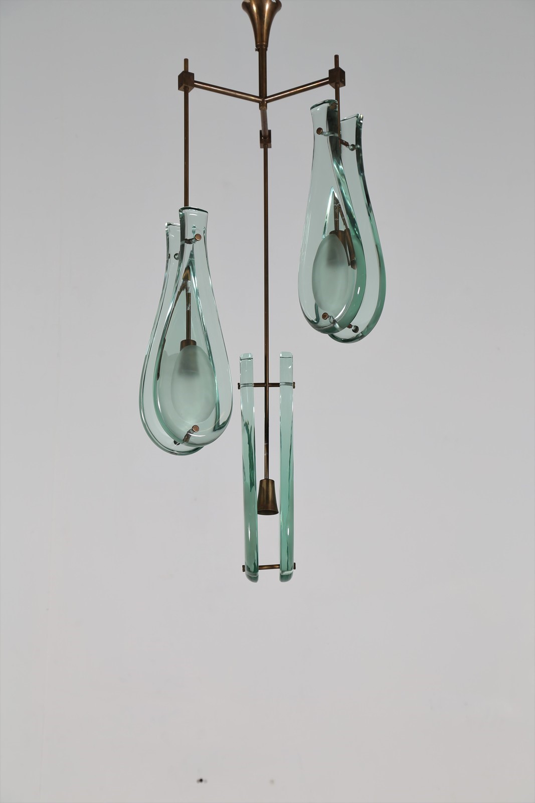 INGRAND MAX (1908 - 1969) Lampada a sospensione in ottone ossidato e cristalli sagomati alla mola con scavi opachi, mod. 2450, per Fontana Arte anni 60 . -. Cm 35,00 x 105,00 x 35,00.