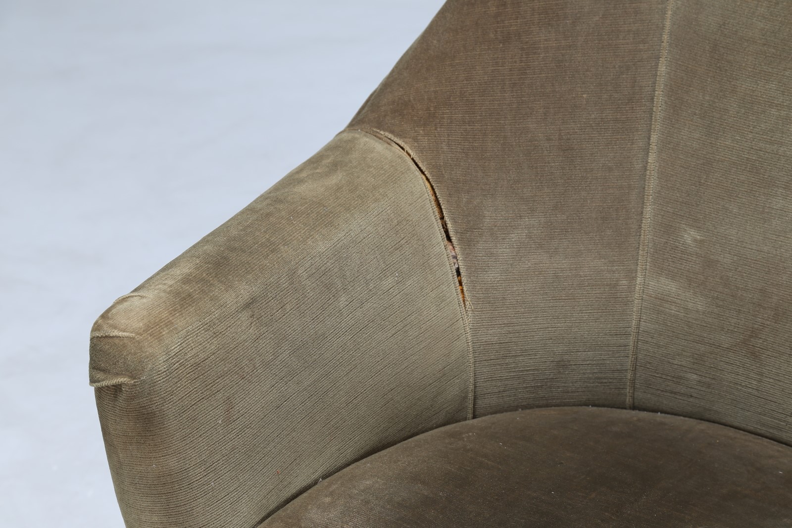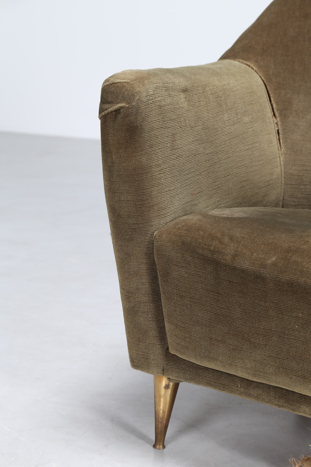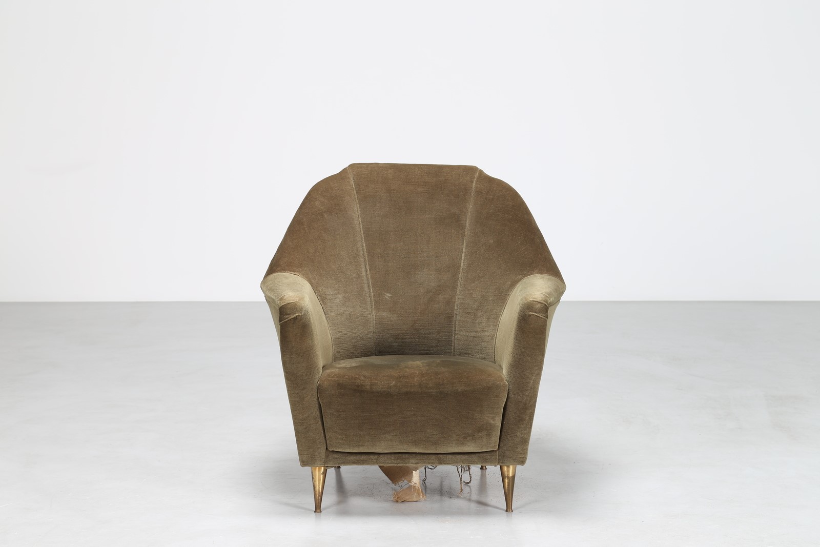 PARISI ICO (1916 - 1996) Poltroncina con piedini in ottone in legno e velluto originale, per Ariberto Colombo, 1951. Pubblicazioni; Ico Parisi Design, Catalogo Ragionato, Silvana Editoriale a cura di Roberta Lietti, pag. 250, 1951.4C. Disponibile certificato di autenticità, Archivio del Design di Ico Parisi. . -. Cm 83,00 x 84,00 x 76,00.
