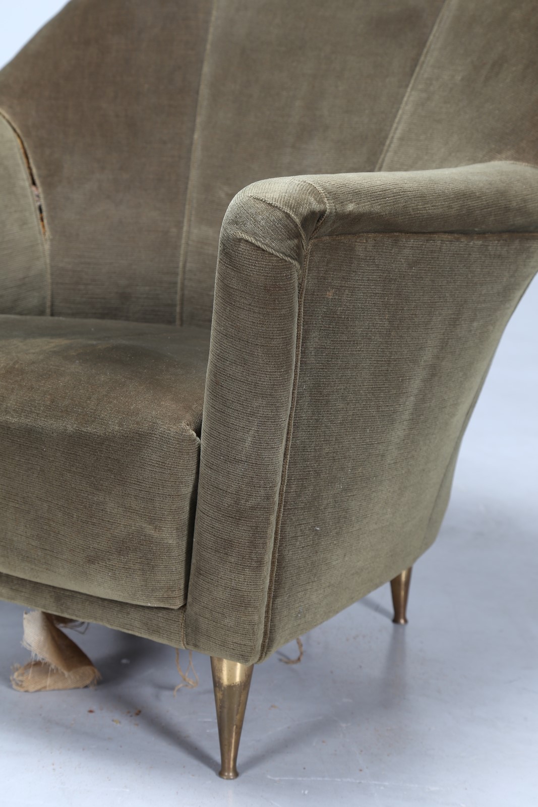 PARISI ICO (1916 - 1996) Poltroncina con piedini in ottone in legno e velluto...