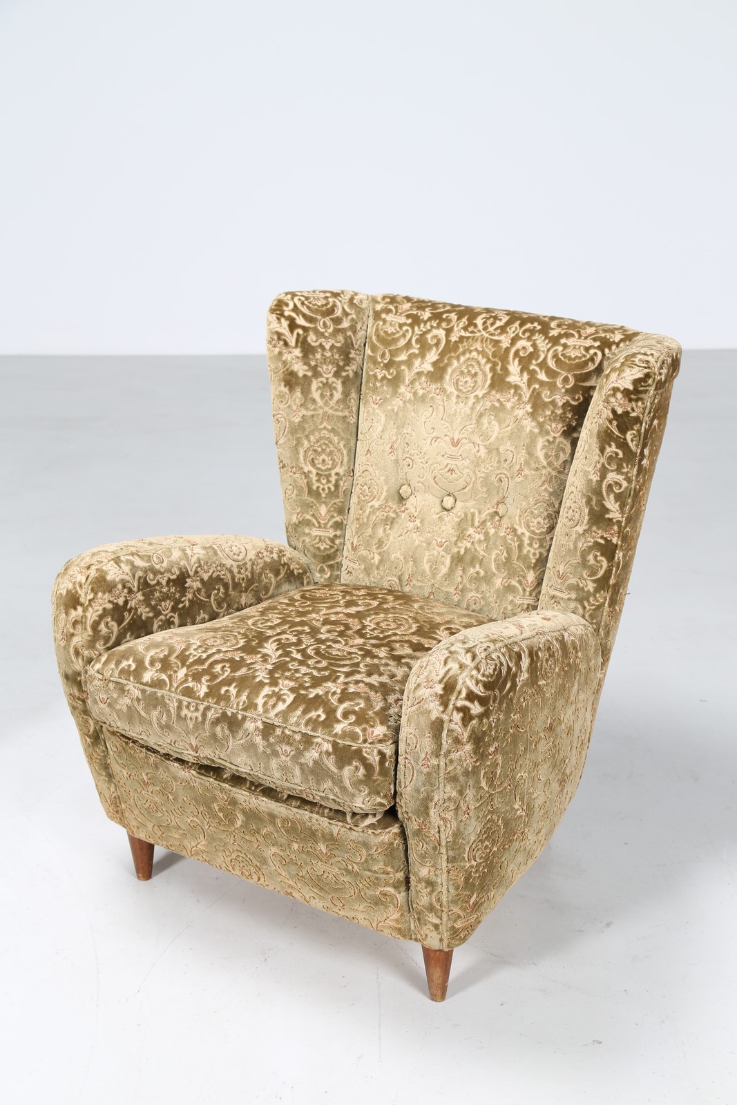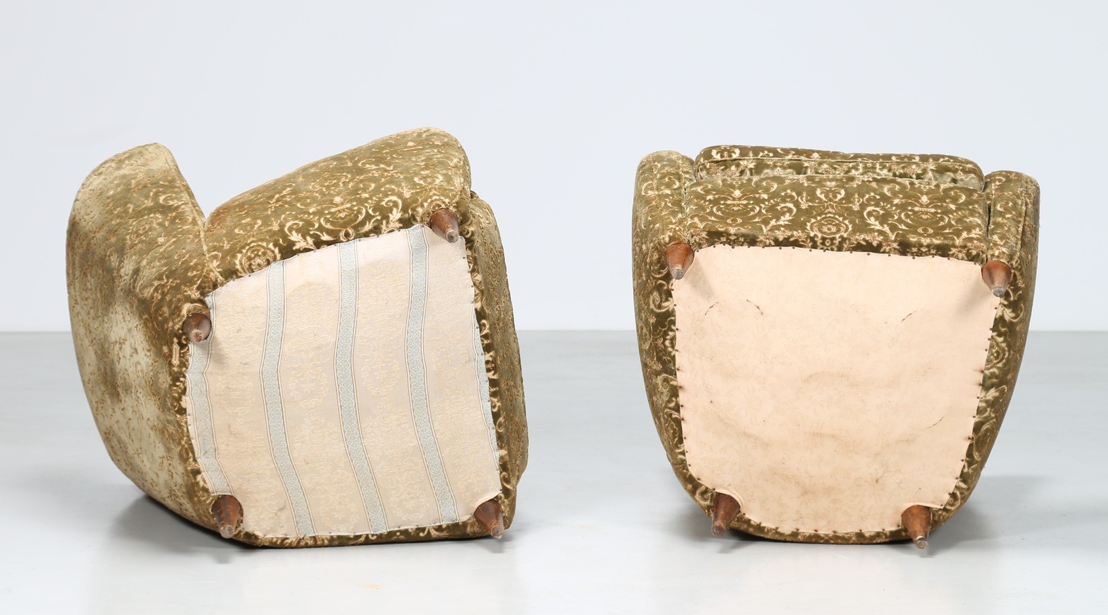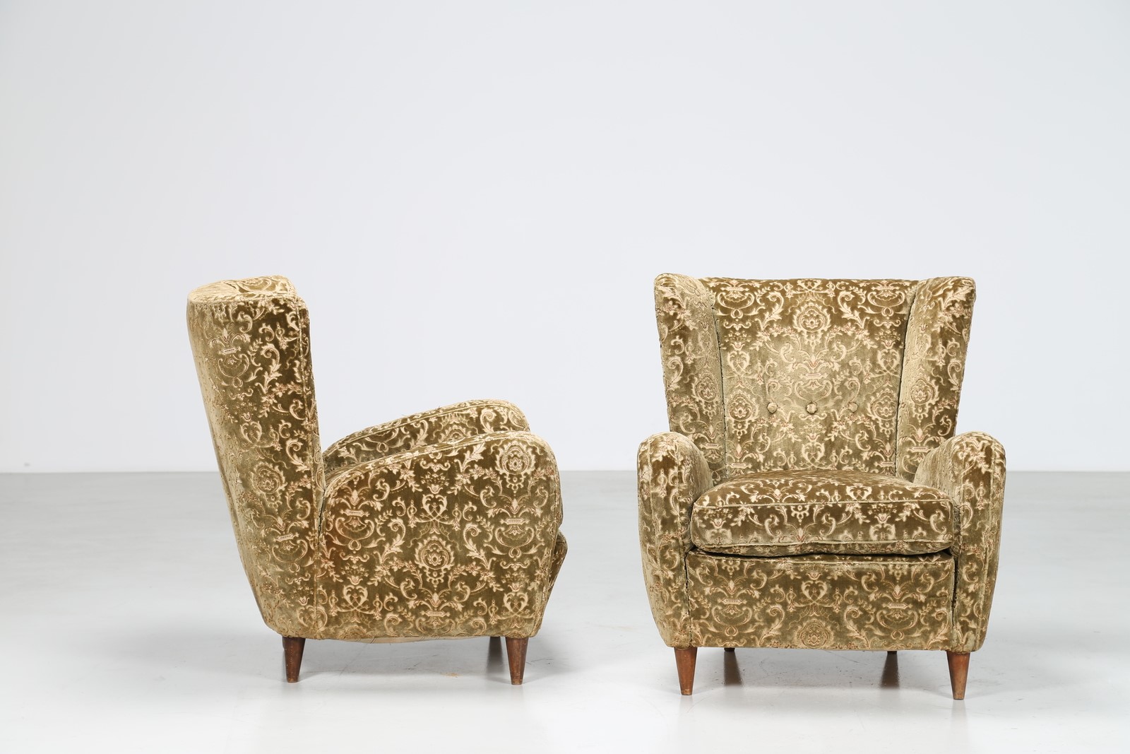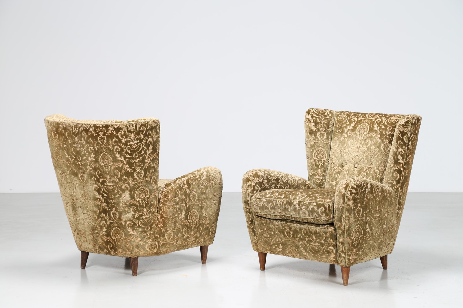 BUFFA PAOLO (1903 - 1970) Attrib. Coppia poltrone in tessuto e legno, anni...