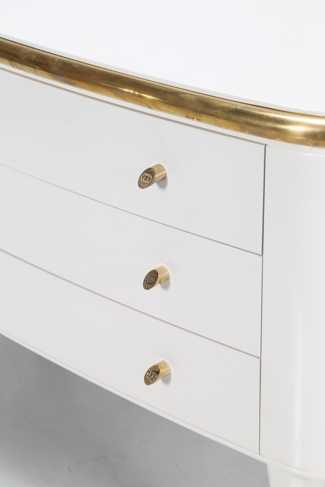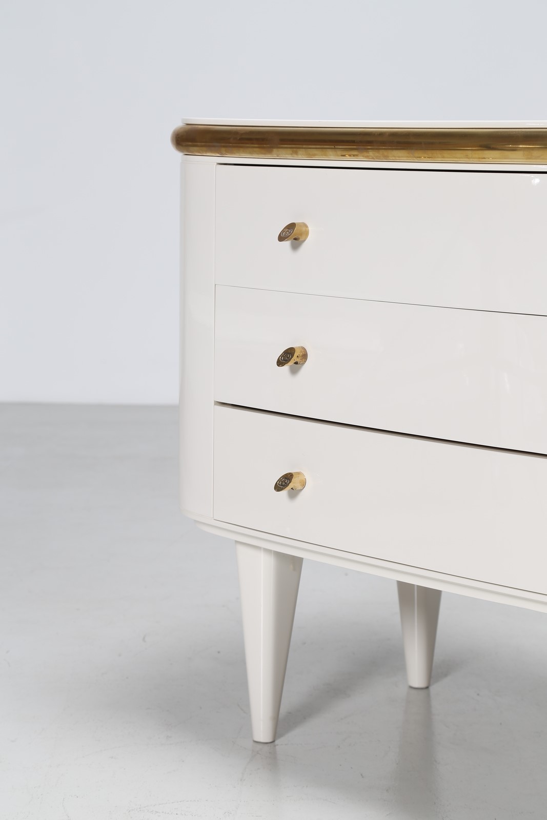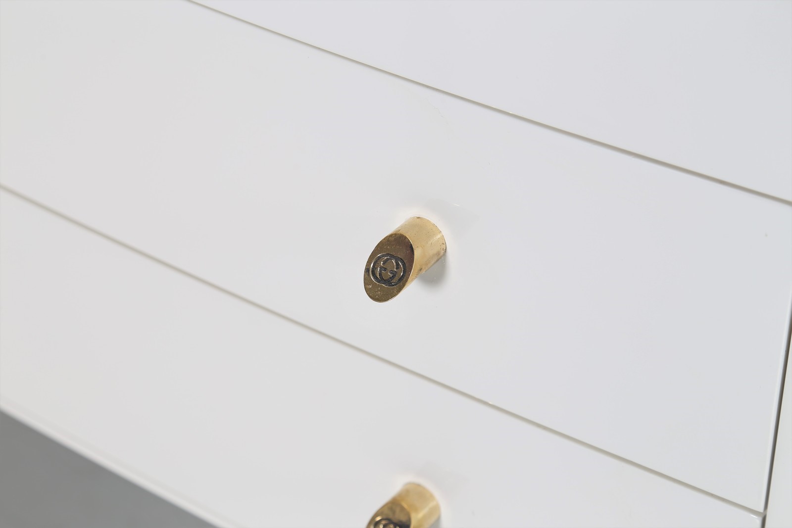 MANIFATTURA ITALIANA Cassettiera piccola in legno laccato bianco per negozio Gucci Perugia. . Cm 130,00 x 80,00 x 54,00.