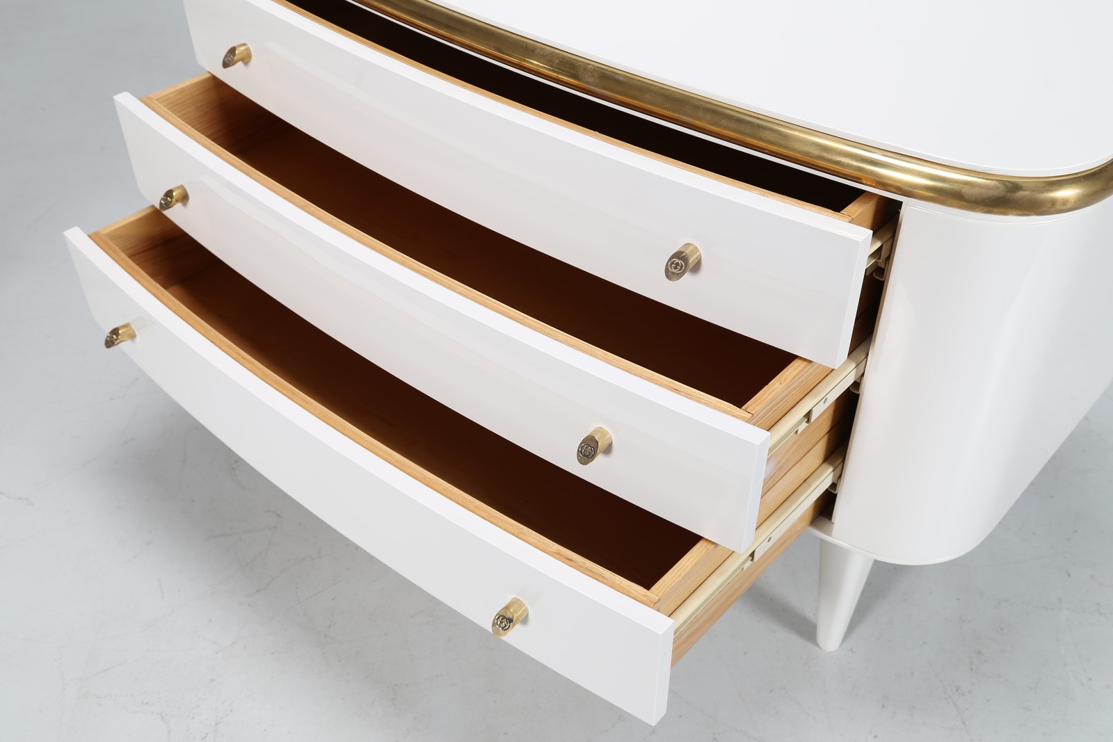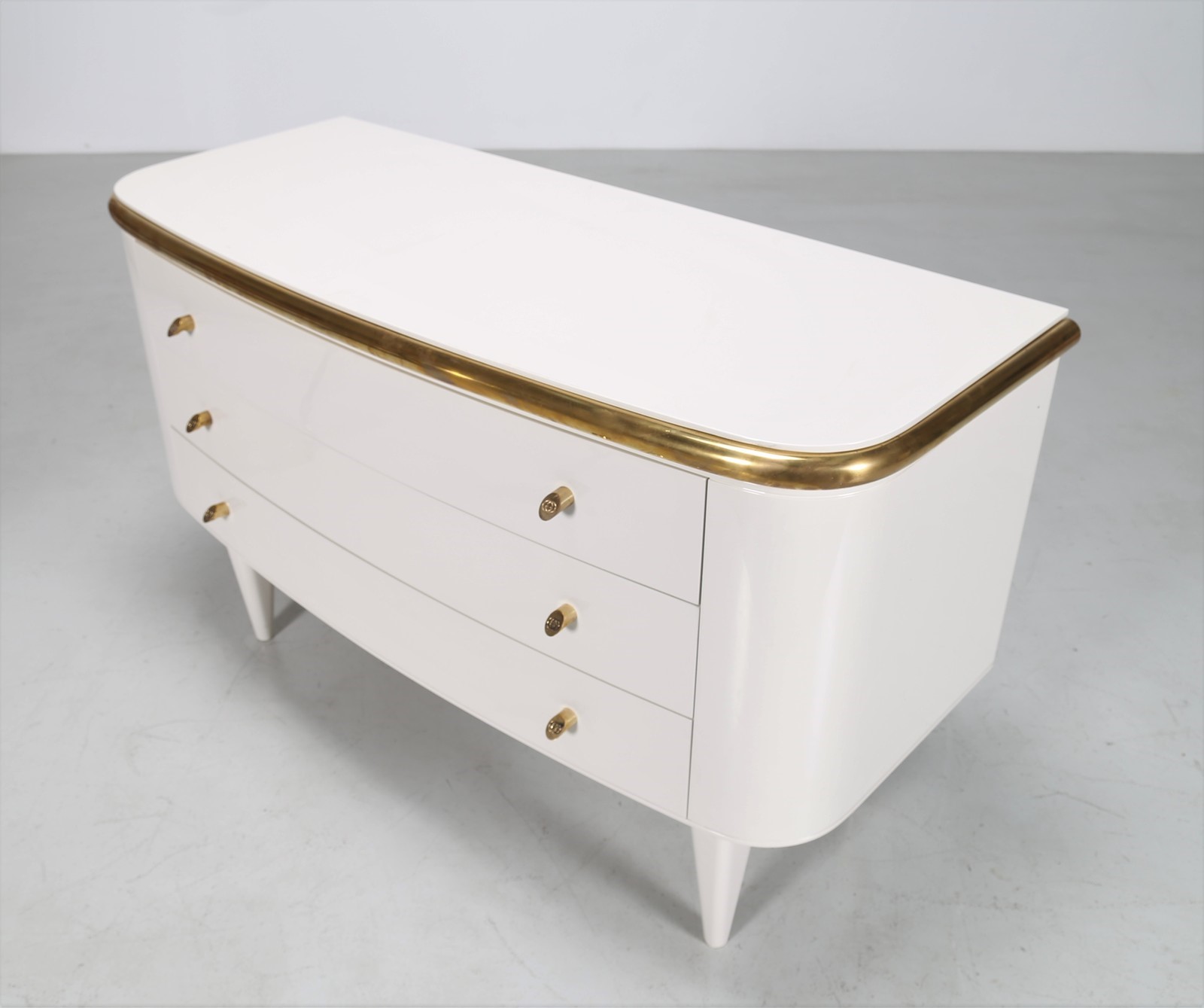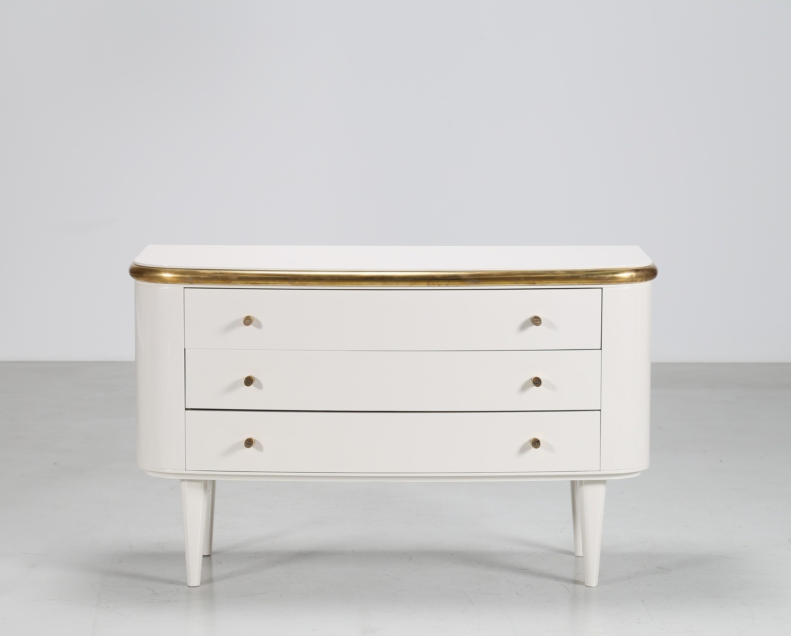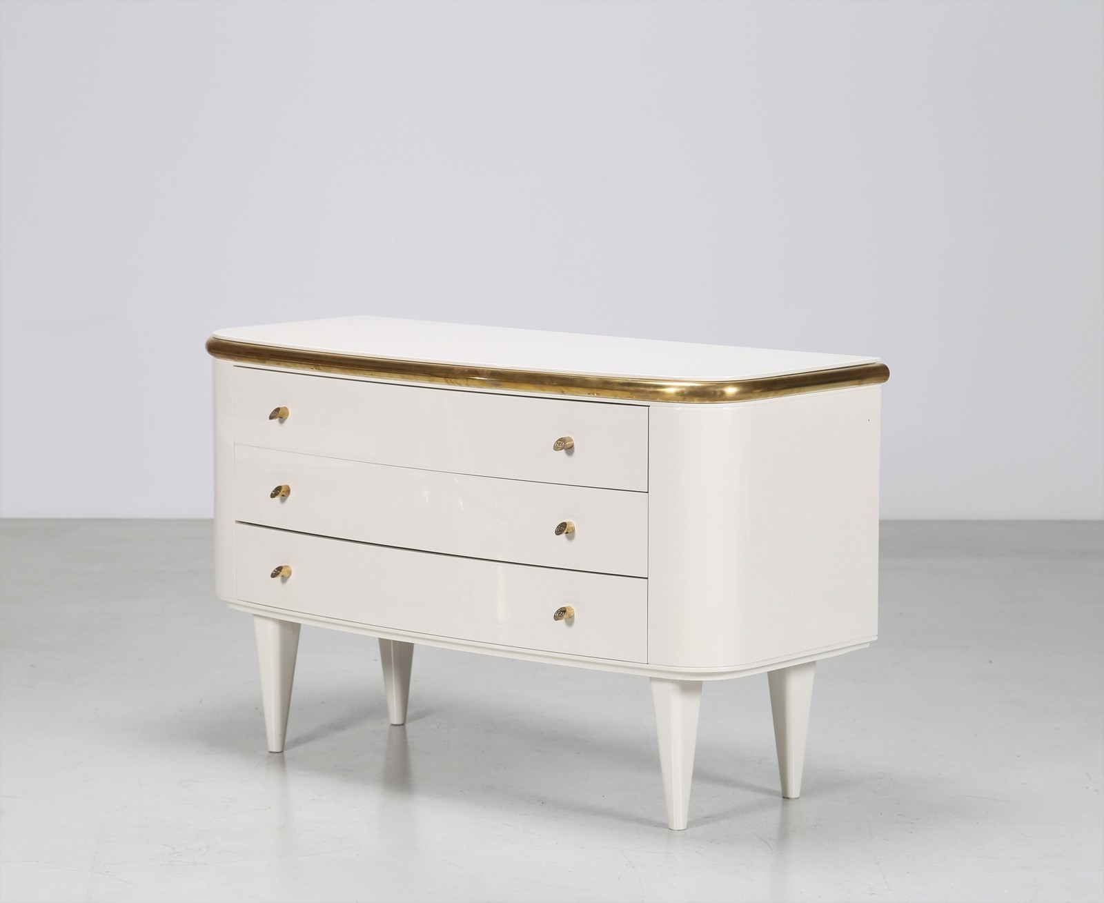MANIFATTURA ITALIANA Cassettiera piccola in legno laccato bianco per negozio Gucci Perugia. . Cm 130,00 x 80,00 x 54,00.