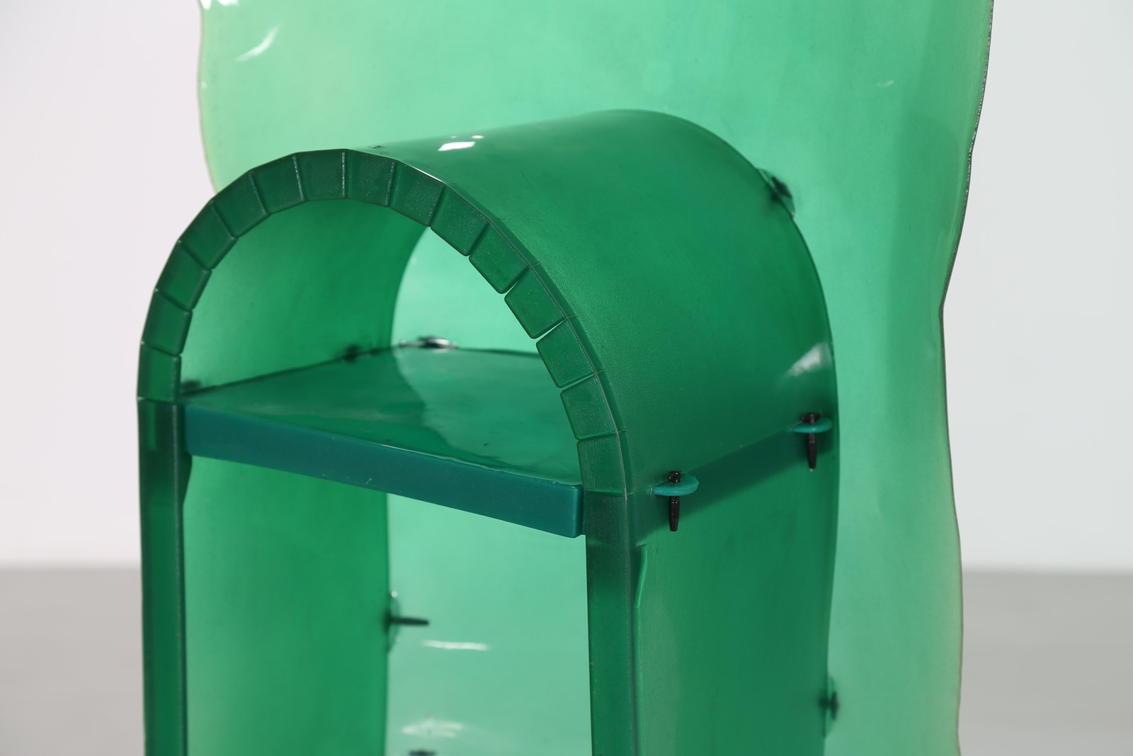 PESCE GAETANO (n. 1939) Etagere in resina poliuretanica con specchio in metacrilato ogni pezzo è unico, Zerodisegno. -. Cm 60,00 x 190,00 x 32,00.