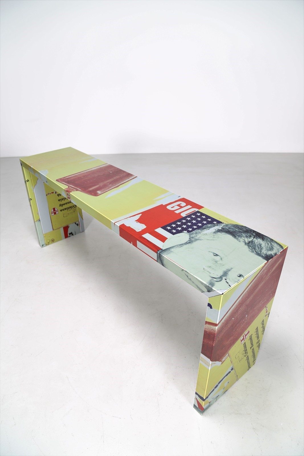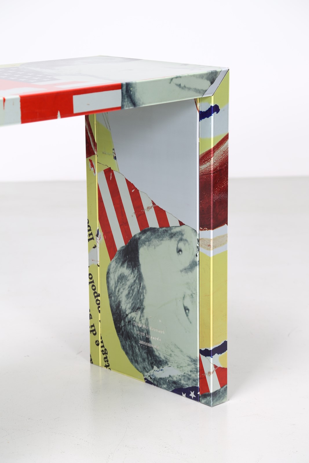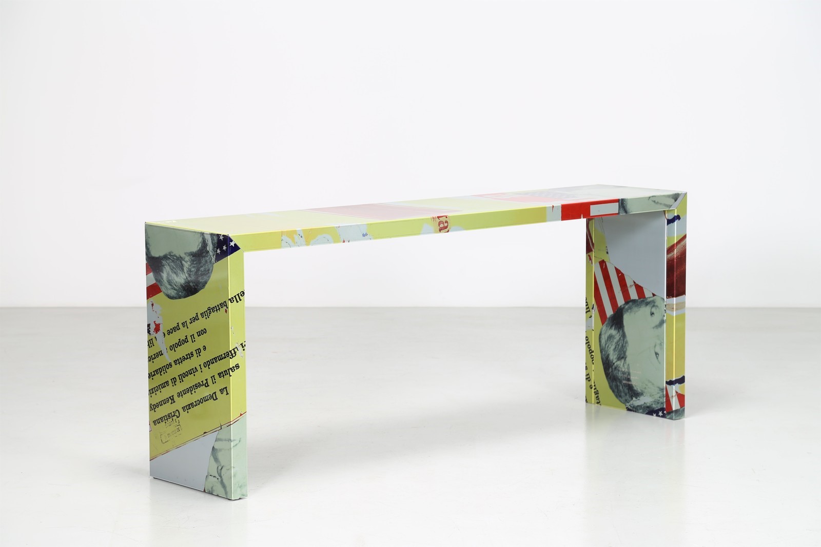 ROTELLA MIMMO (1918 - 2006) Consolle in metallo stampato, mod. Kennedy num. 2 di 99, di Marco Ferreri, prod. Zerodisegno 2004. -. Cm 180,00 x 73,50 x 40,00.
