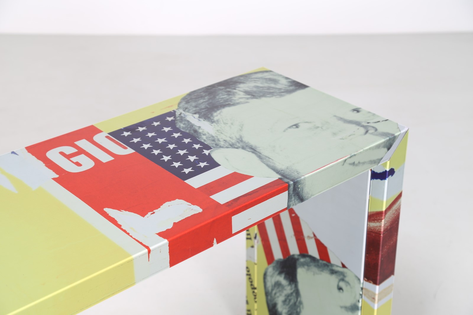 ROTELLA MIMMO (1918 - 2006) Consolle in metallo stampato, mod. Kennedy num. 2...