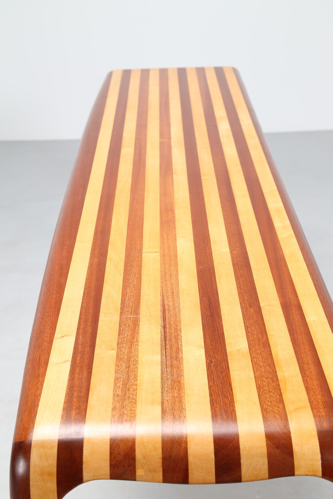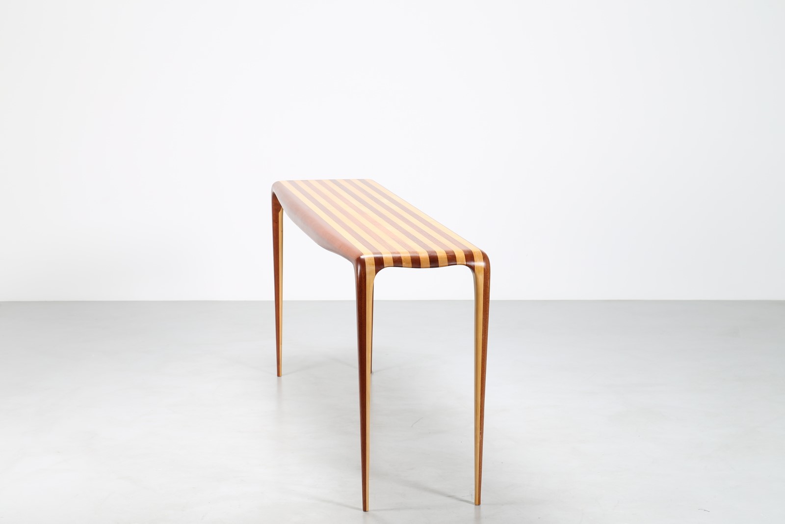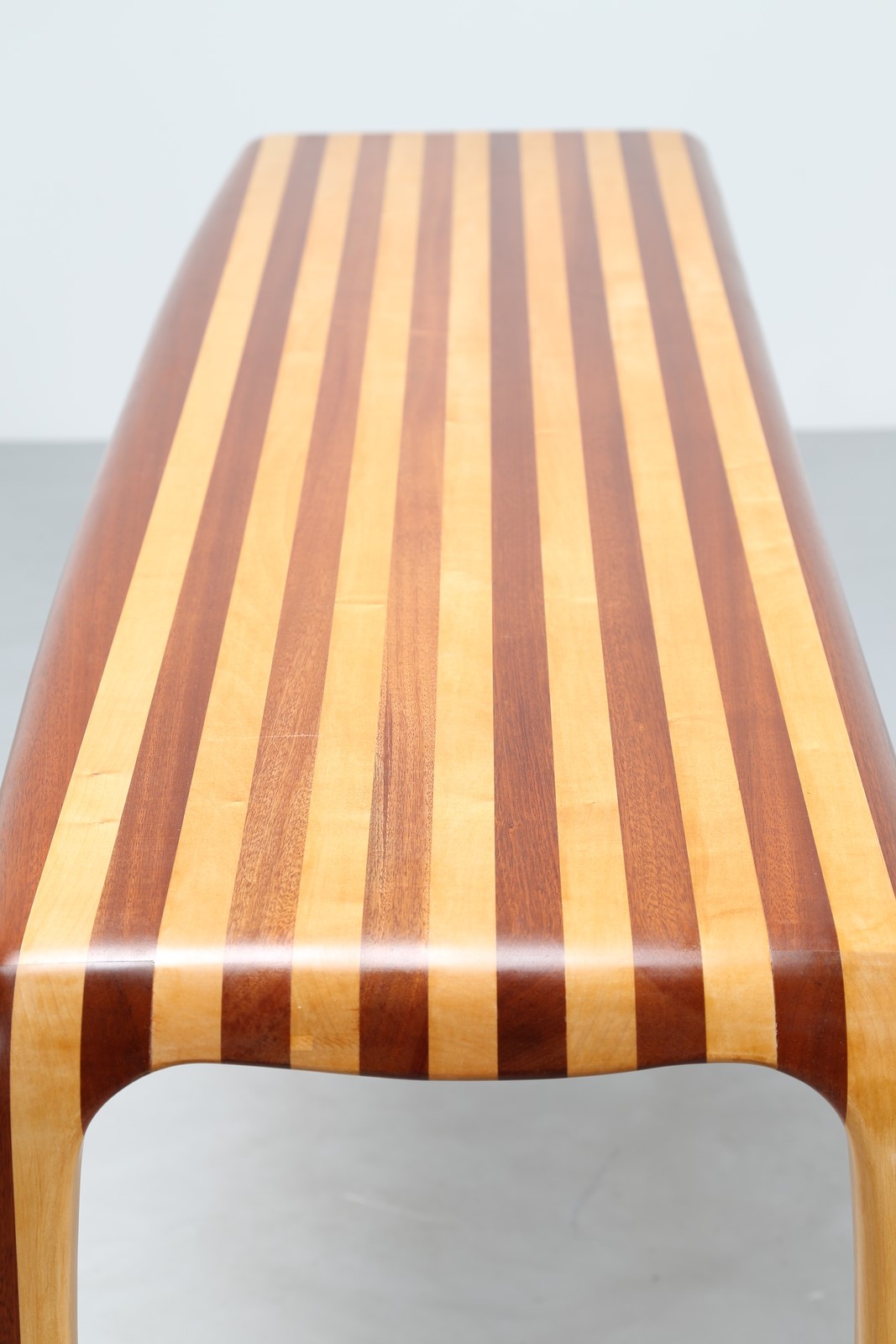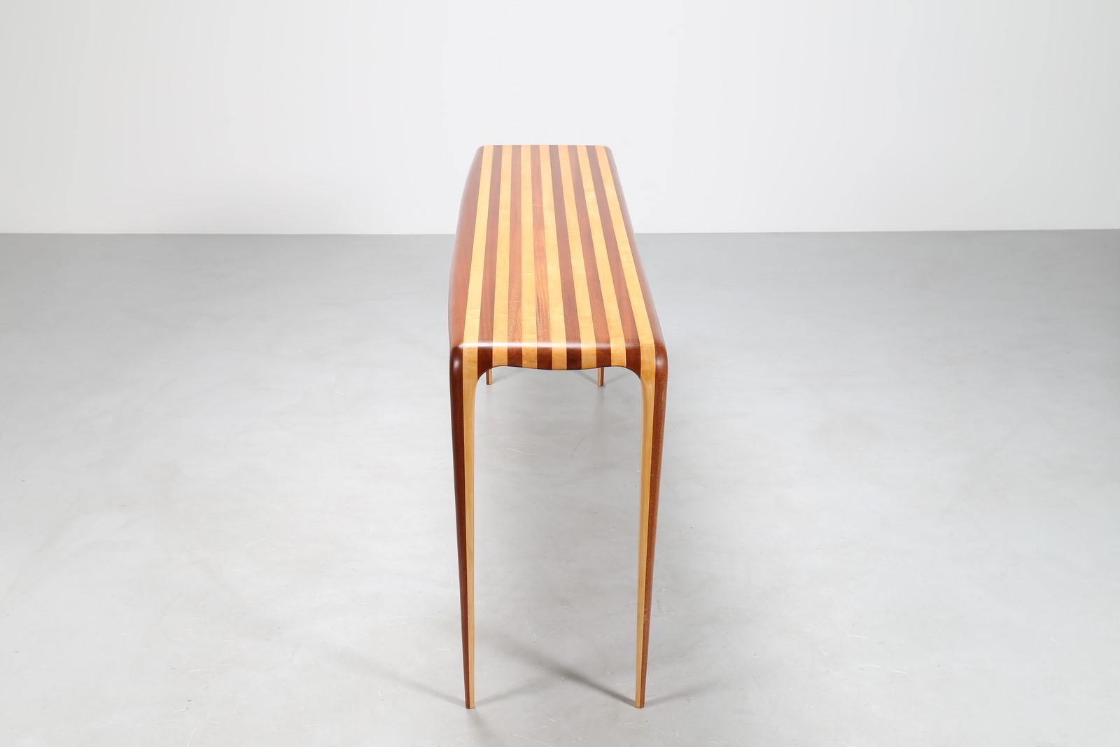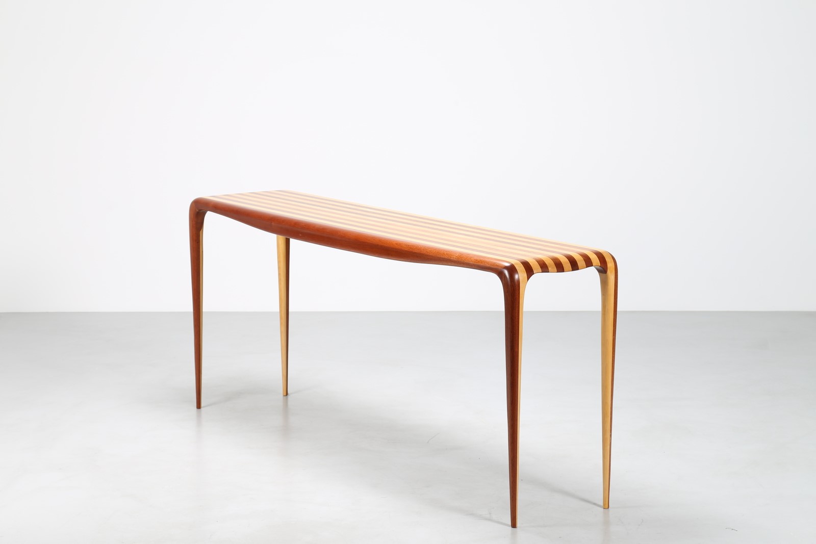 MANIFATTURA ITALIANA Consolle bicolore in mogano e acero, anni 80 . -. Cm 201,00 x 86,00 x 50,00.