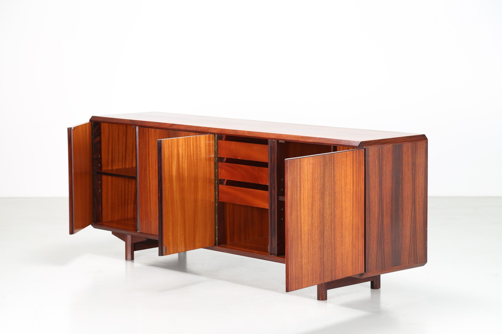 MANIFATTURA ITALIANA Credenza in palissandro, anni 60. -. Cm 210,50 x 80,00 x 48,00.