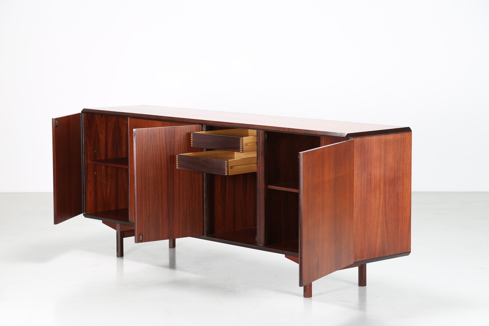 MANIFATTURA ITALIANA Credenza in palissandro, anni 60. -. Cm 210,50 x 83,50 x 46,00.