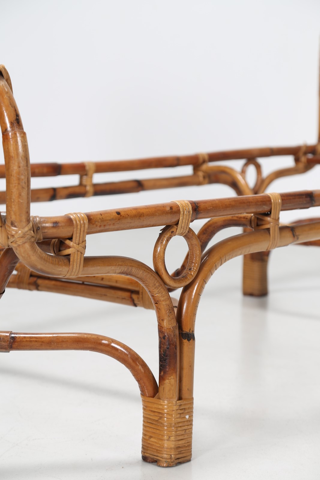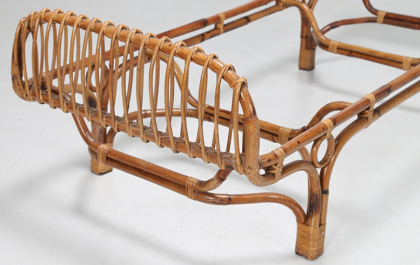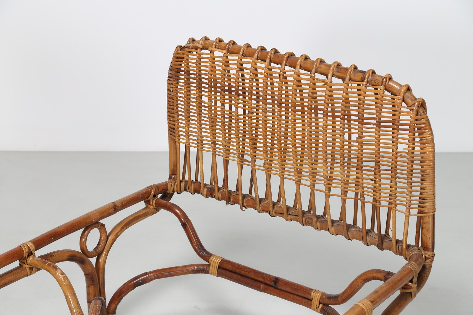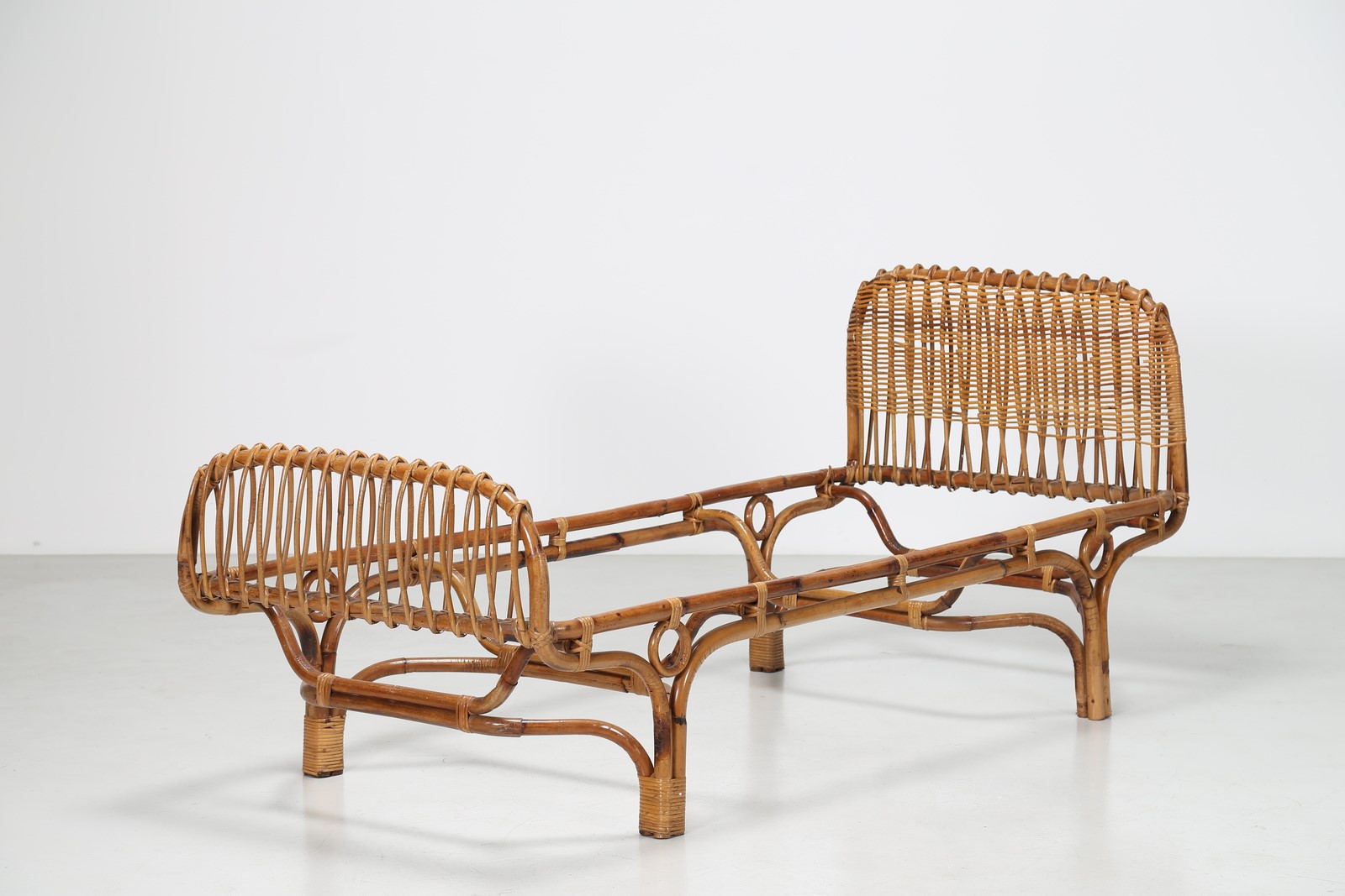 FRANCO ALBINI - FRANCA HELG Letto singolo in canna d’india, per Bonacina, anni 60. Pubblicazione, I. de Guttry, M. P. Maino, Il mobile italiano degli anni 40 e 50, Laterza Bari 1992, pag. 106 . -. Cm 206,00 x 90,00 x 87,00.