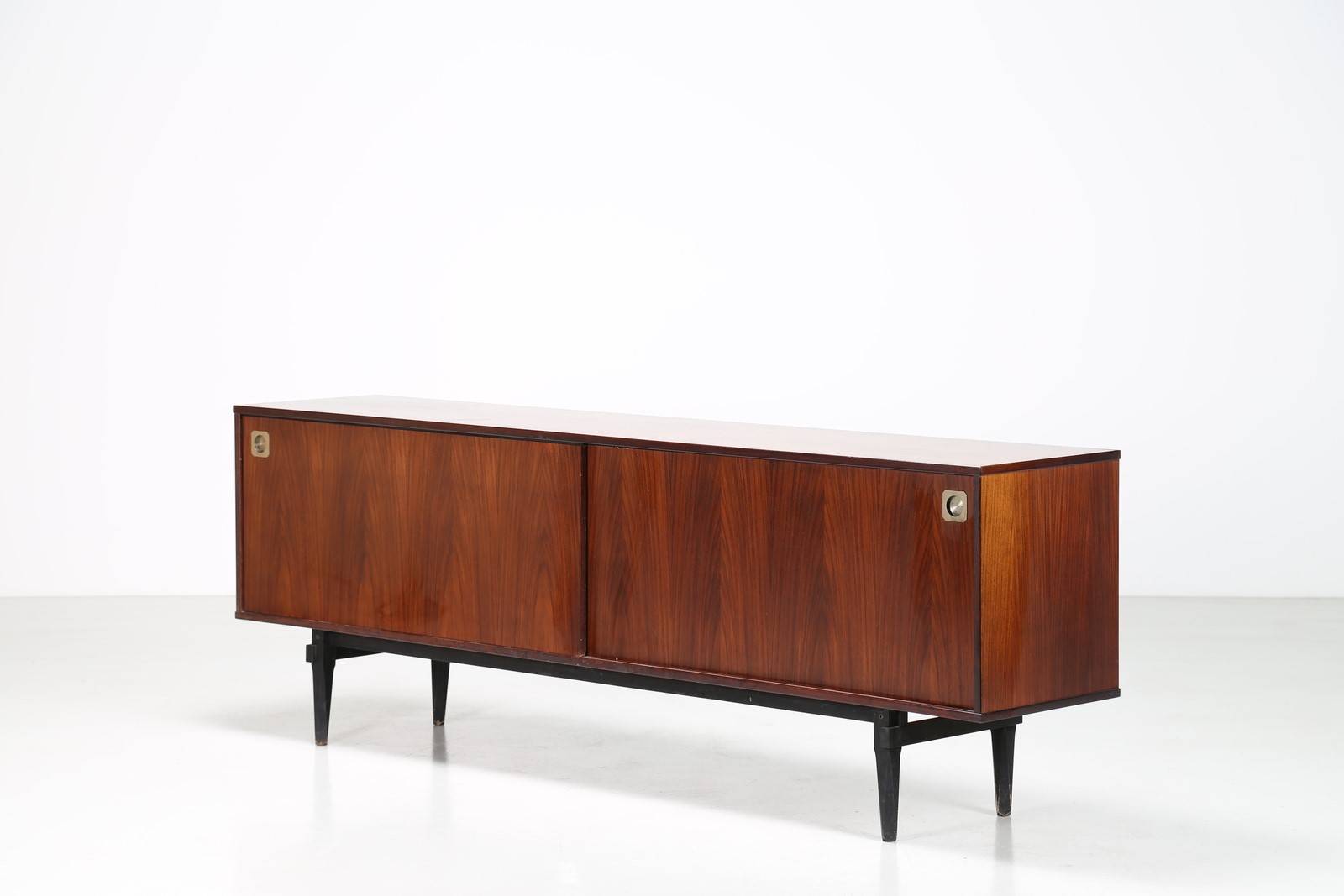 DASSI M.M. Credenza in palissandro con ante scorrevoli, anni 50. . Cm 220,00...