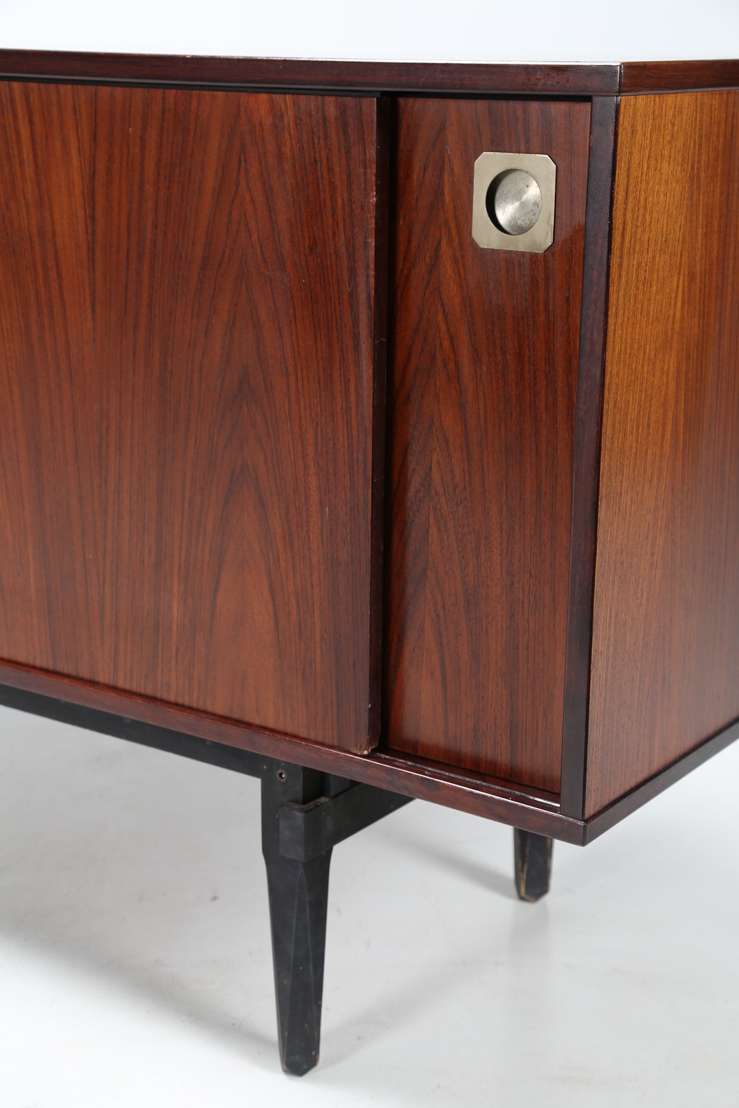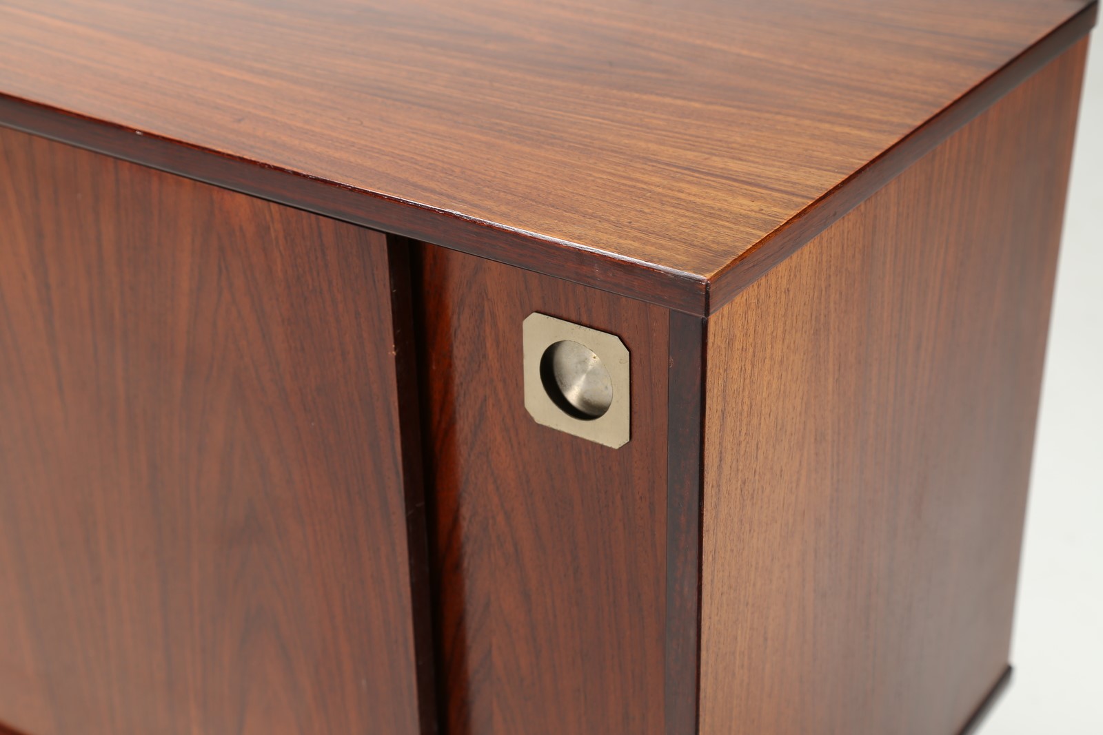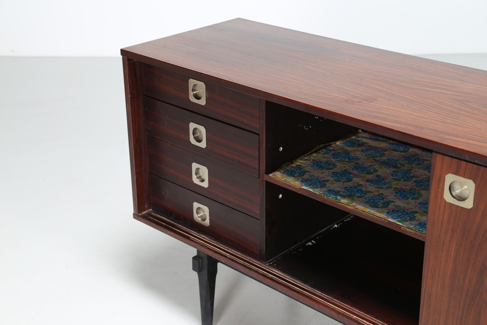 DASSI M.M. Credenza in palissandro con ante scorrevoli, anni 50. . Cm 220,00 x 77,00 x 45,00.