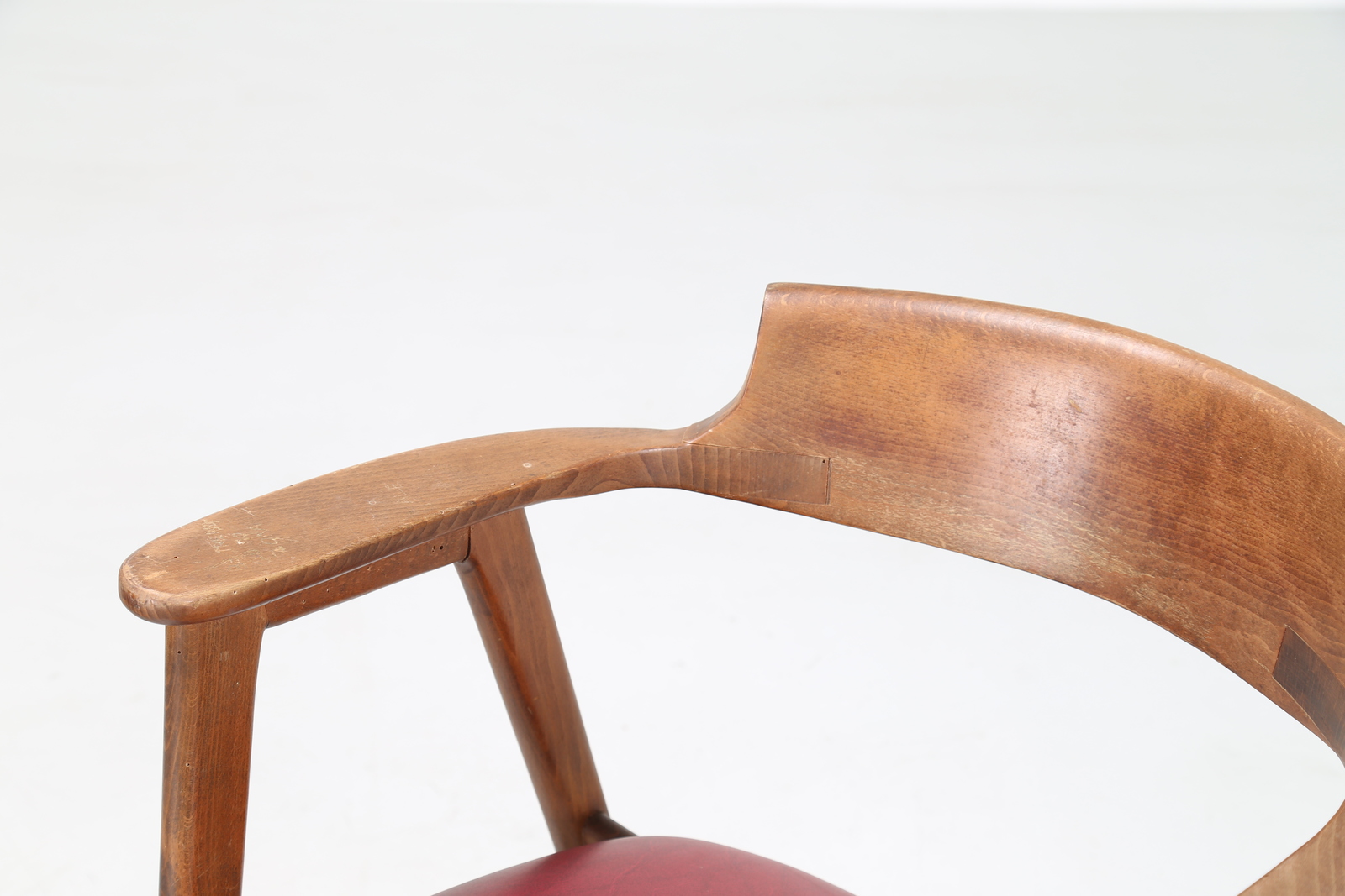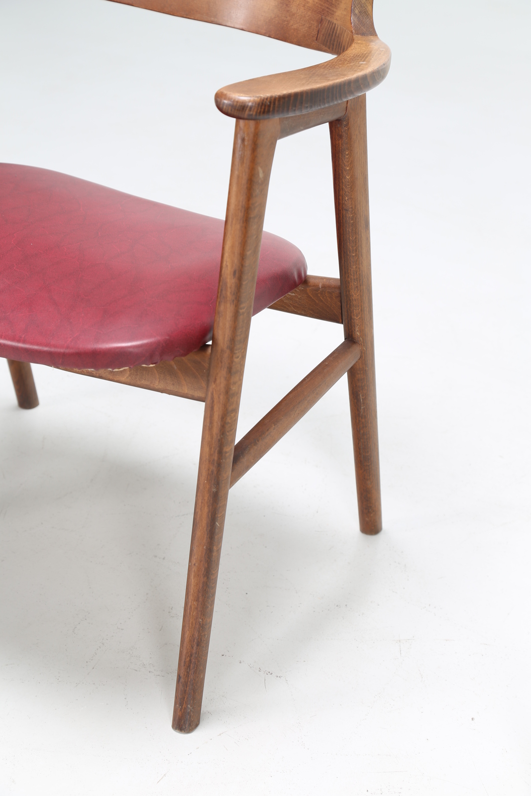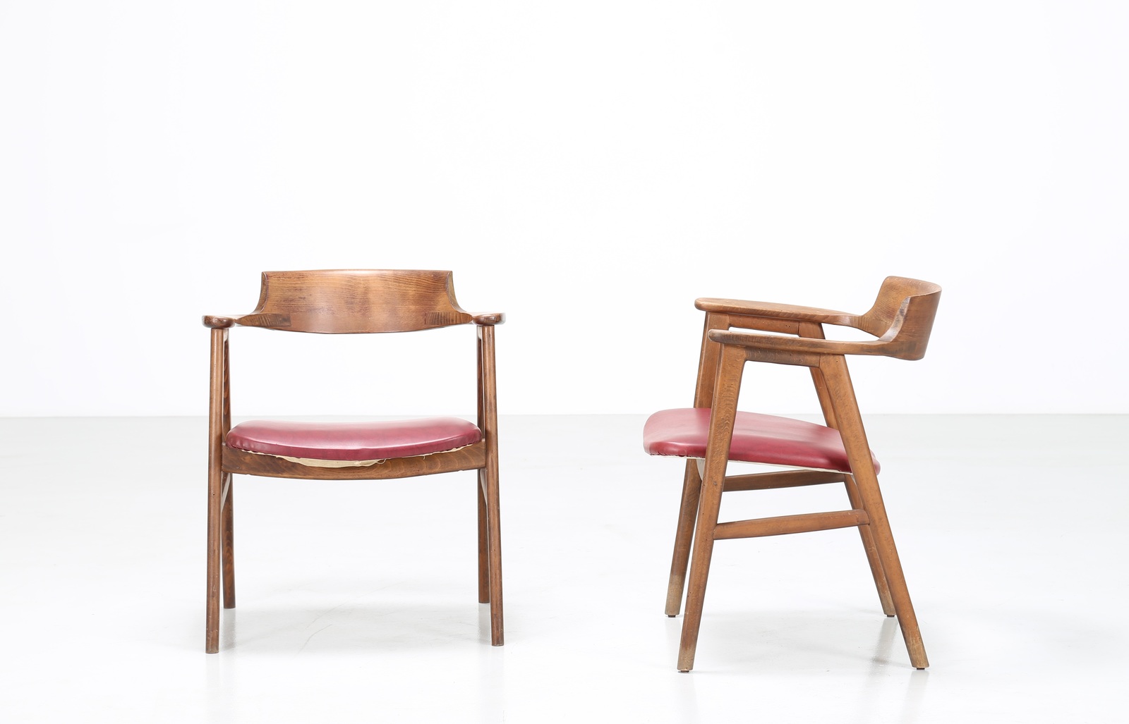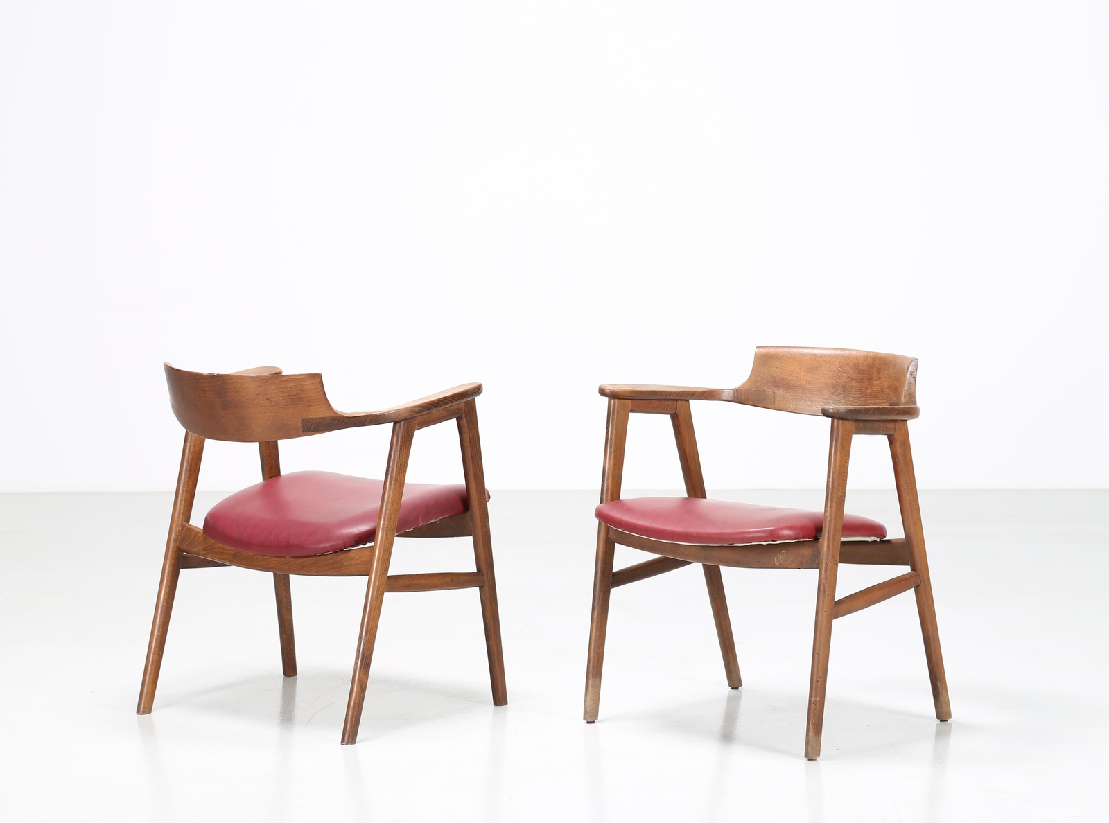 MANIFATTURA ITALIANA Coppia di sedie in faggio e skai. . Cm 61,00 x 71,00 x 55,00.