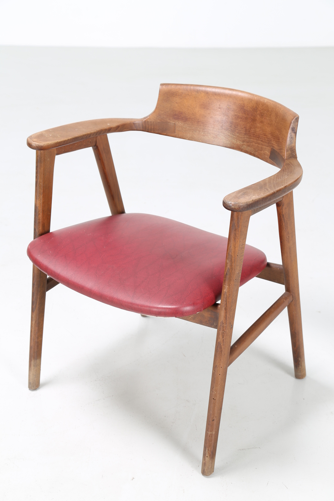 MANIFATTURA ITALIANA Coppia di sedie in faggio e skai. . Cm 61,00 x 71,00 x...