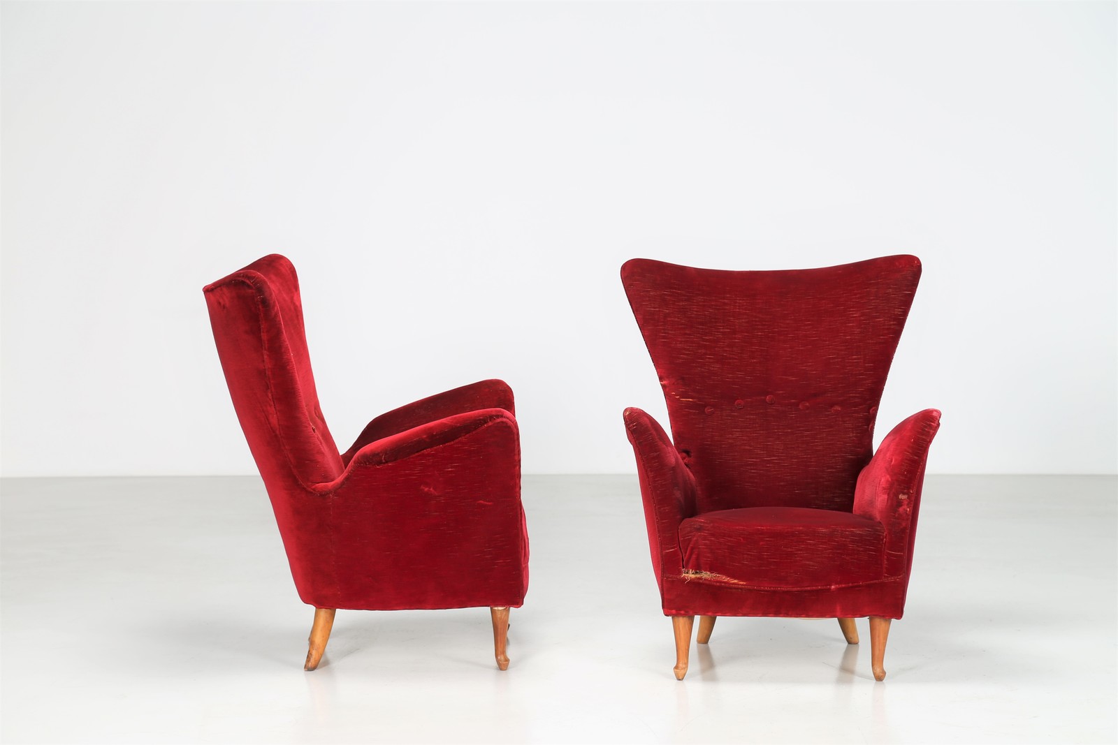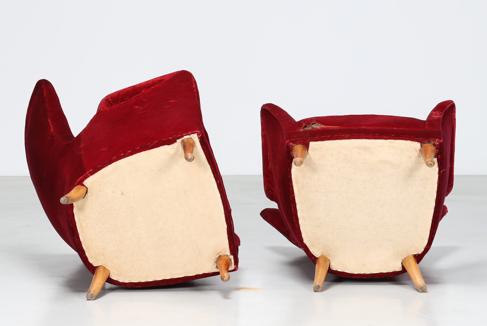 MANIFATTURA ITALIANA Coppia poltrone in tessuto e legno, anni 50. -. Cm 68,00 x 88,00 x 69,00.