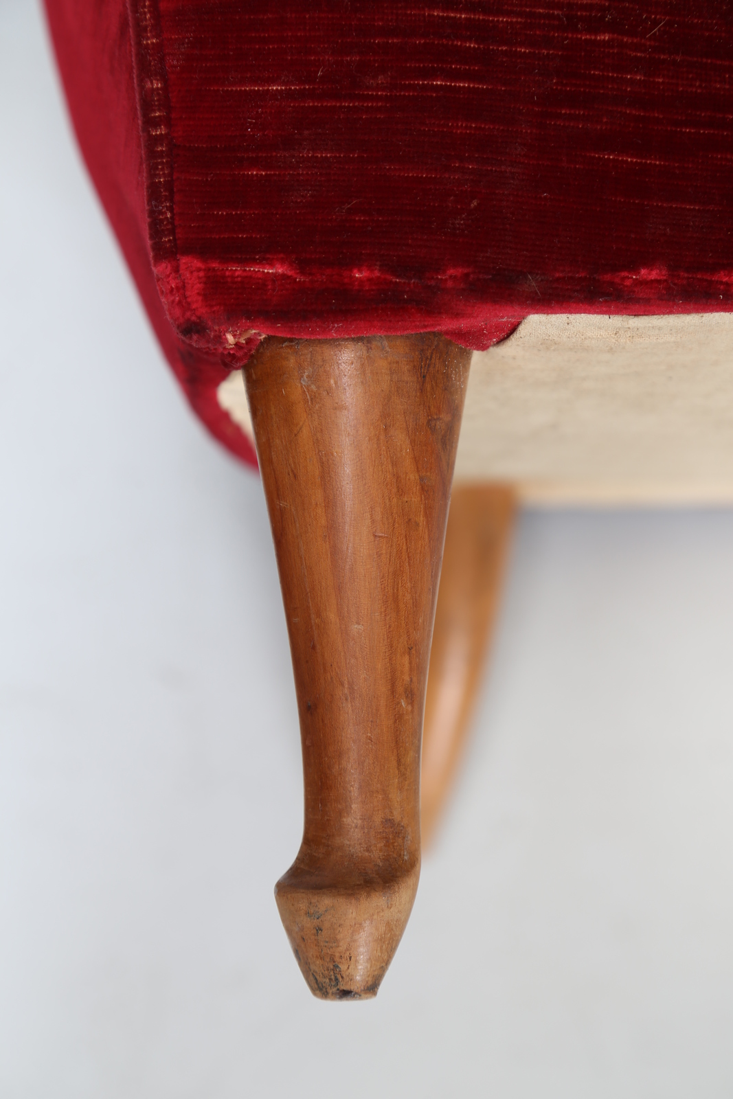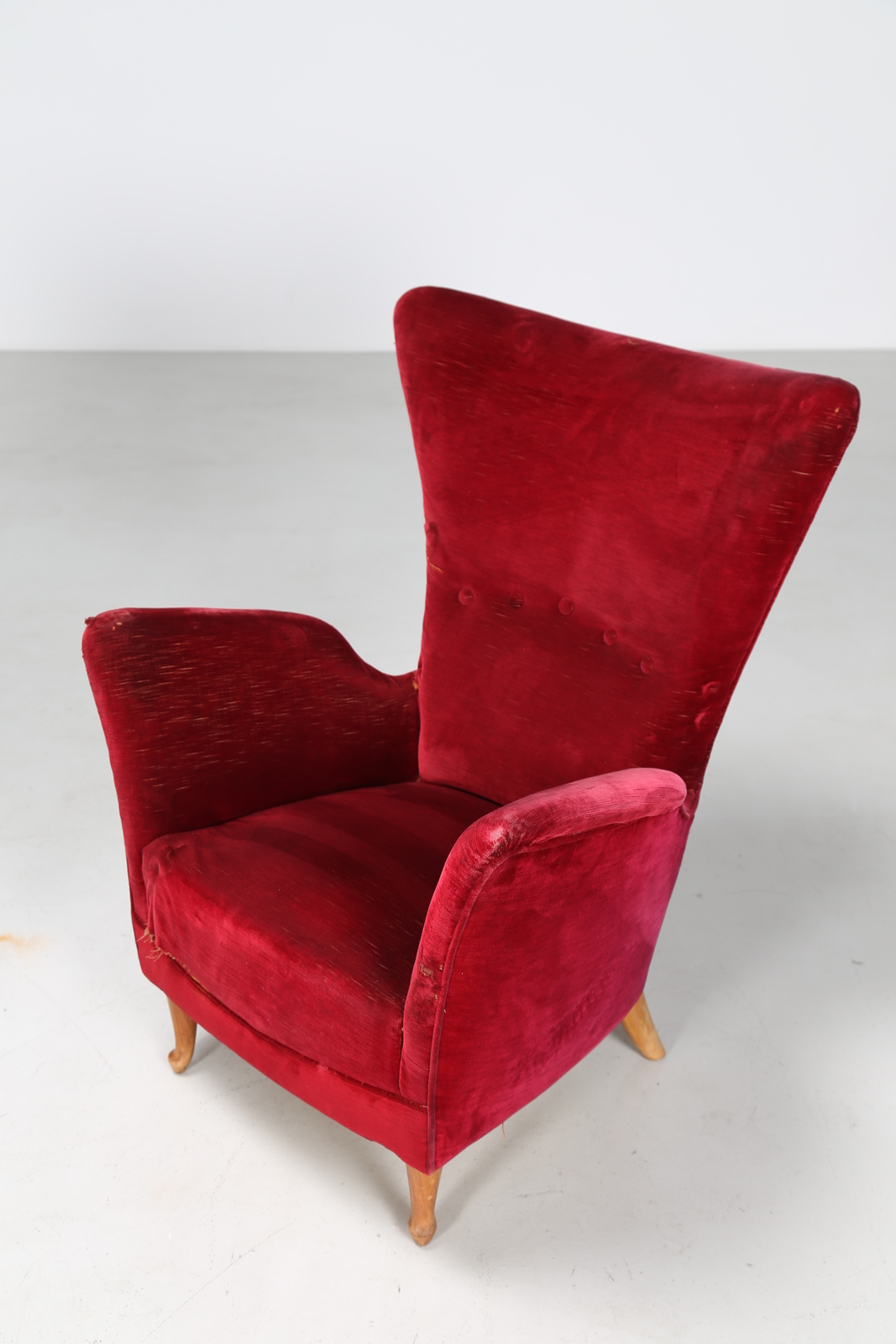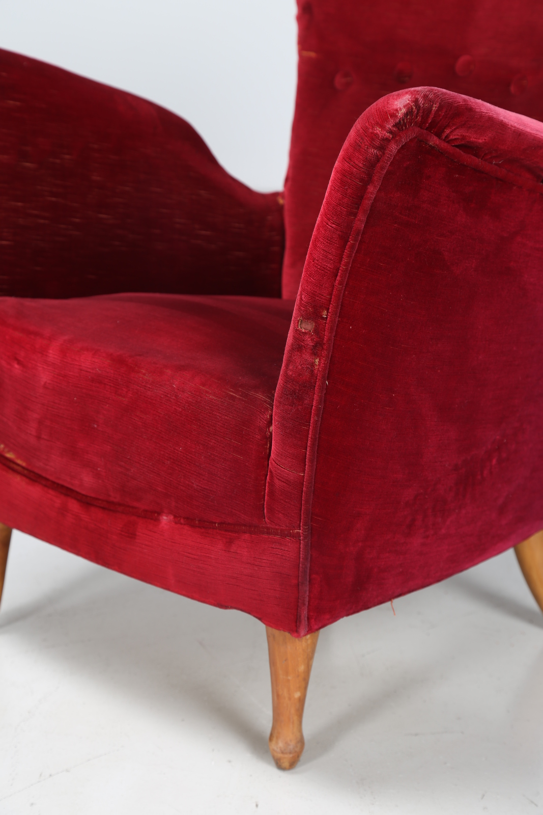 MANIFATTURA ITALIANA Coppia poltrone in tessuto e legno, anni 50. -. Cm 68,00...