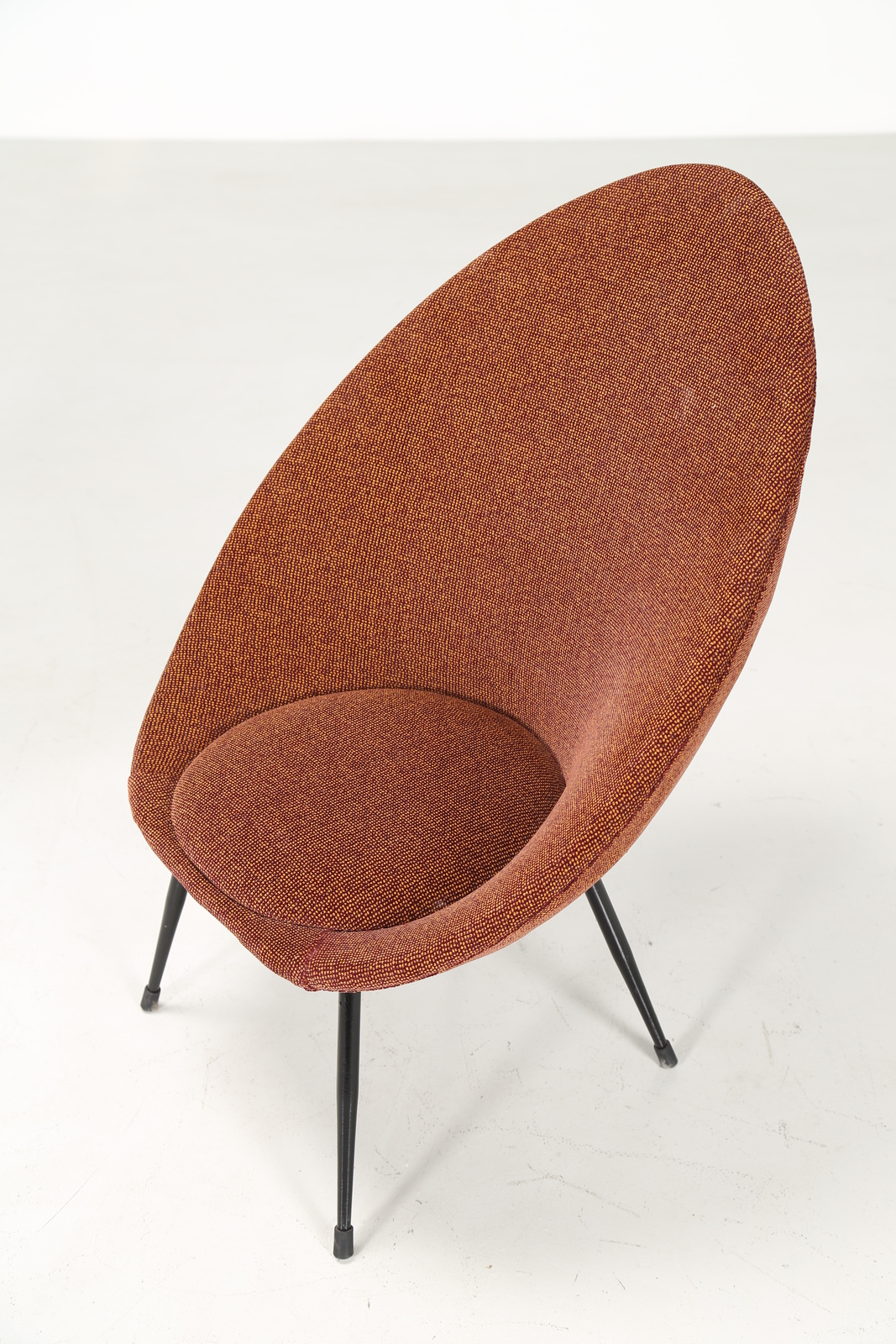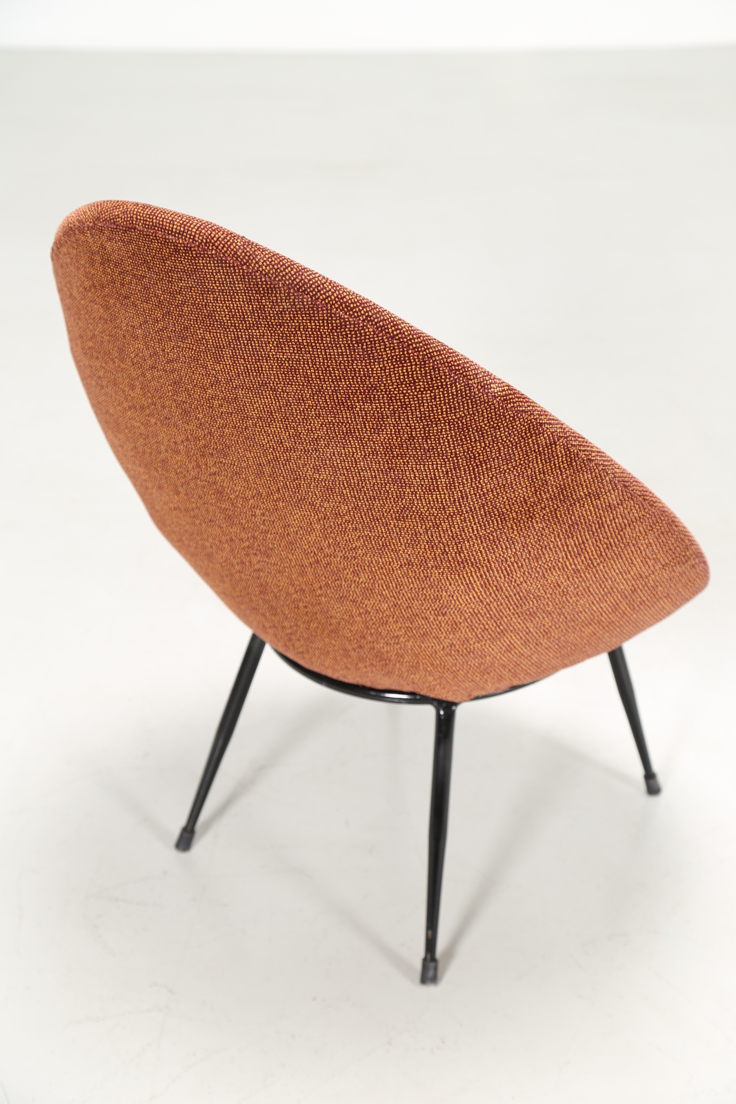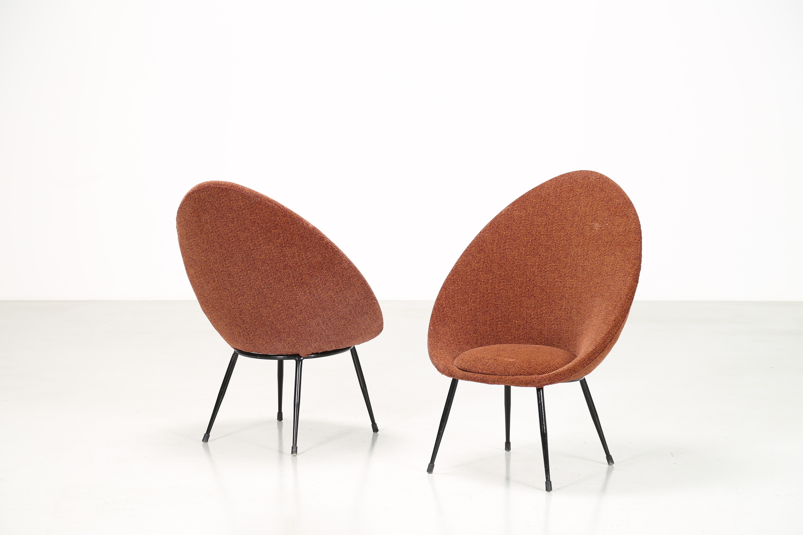 MANIFATTURA ITALIANA Coppia di poltroncine in metallo e tessuto. . Cm 66,00 x 83,00 x 59,00.