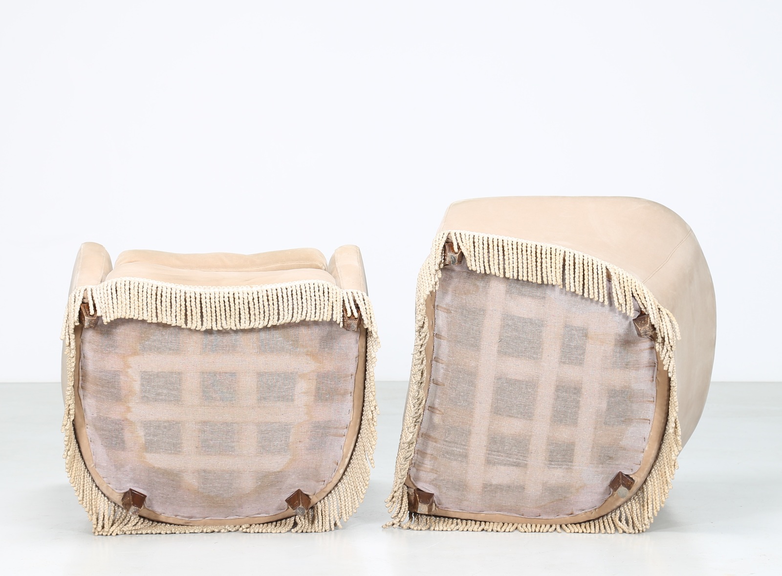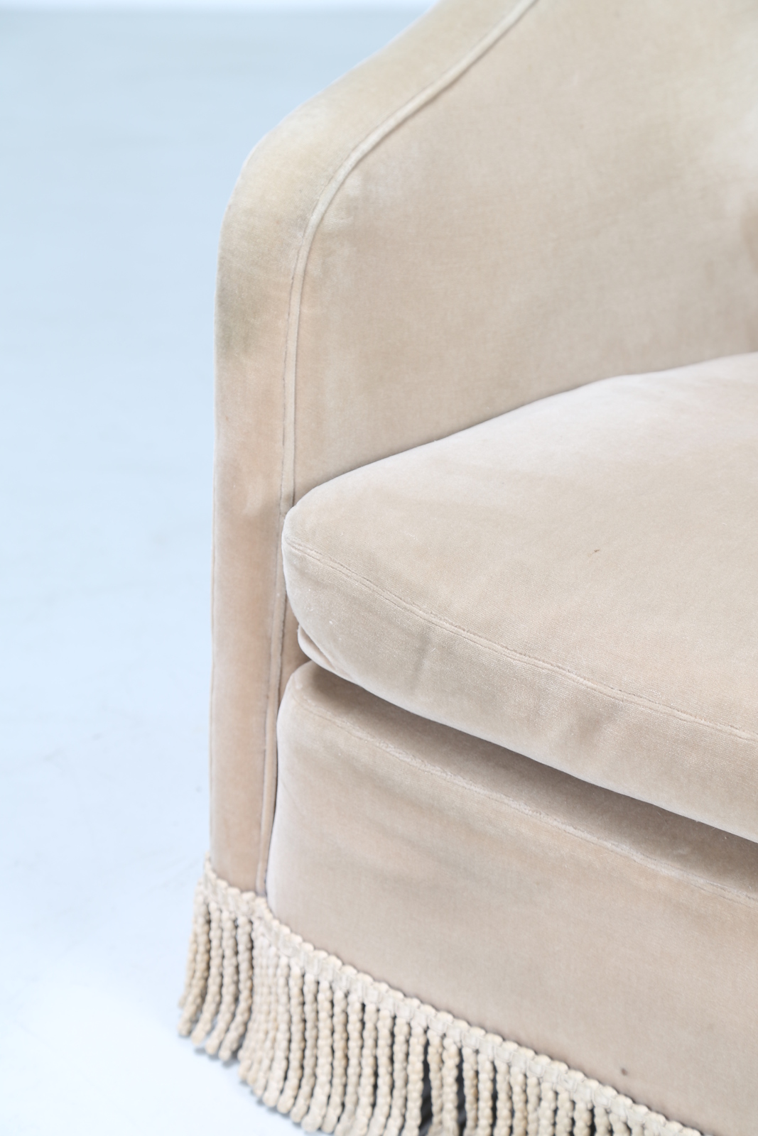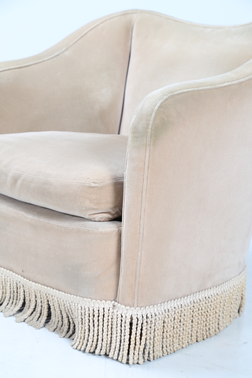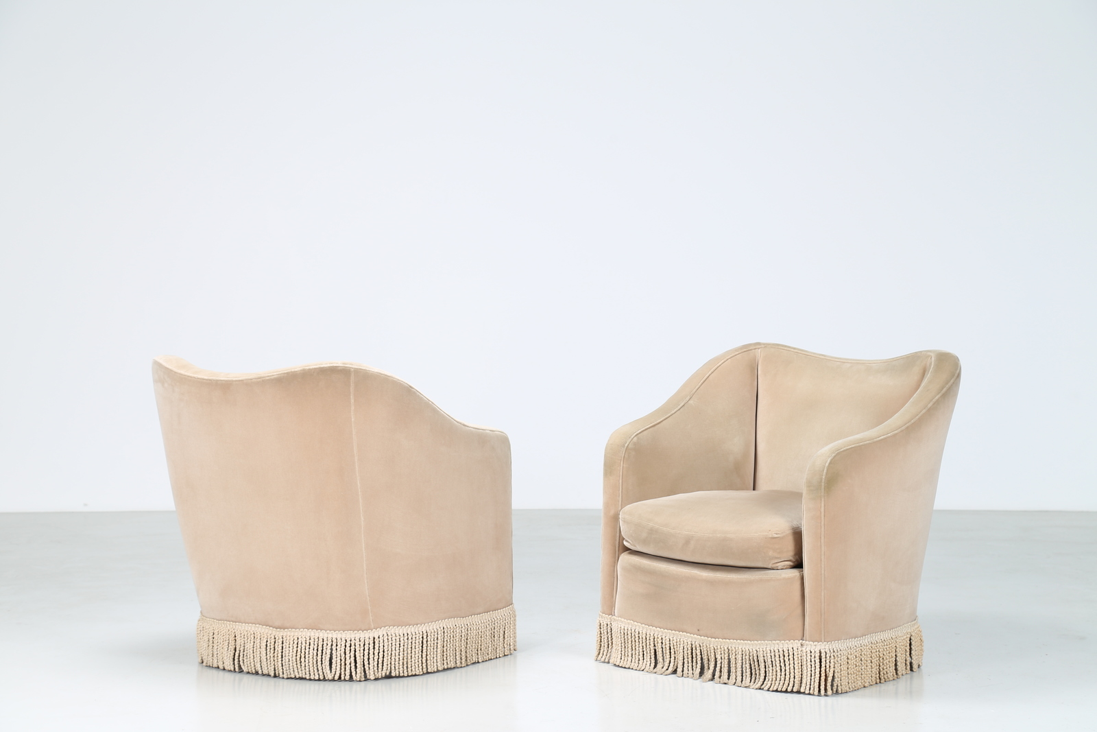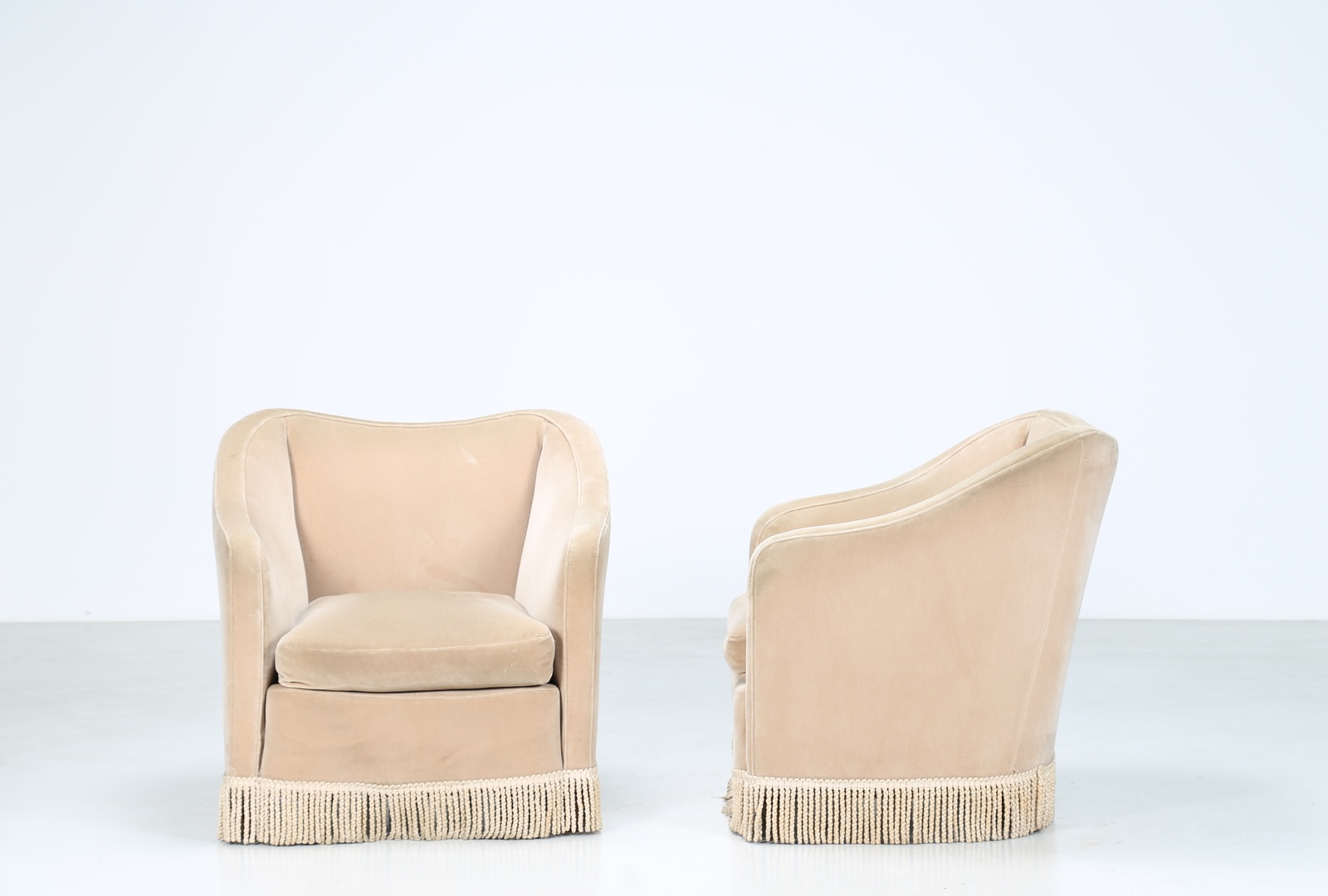 MANIFATTURA ITALIANA Coppia poltrone in tessuto e legno, anni 50. -. Cm 88,00 x 86,00 x 84,00.