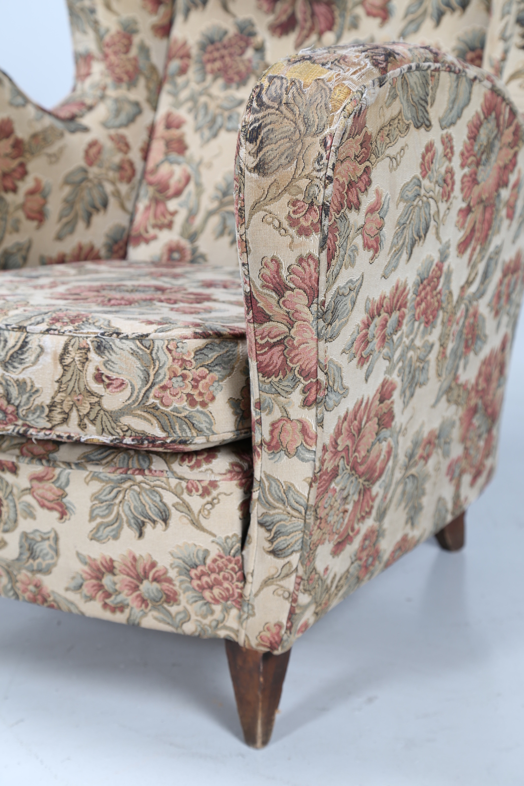 MANIFATTURA ITALIANA Coppia poltrone in tessuto e legno, anni 50. -. Cm 80,00...