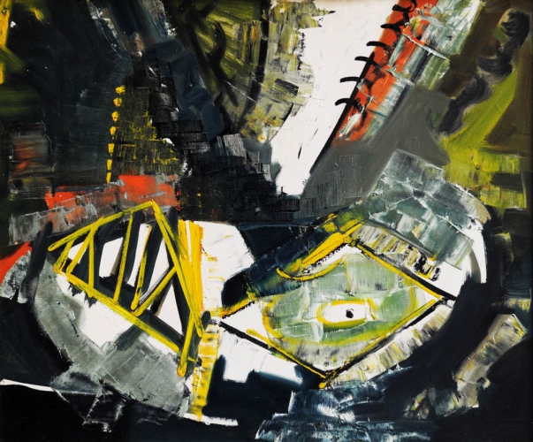 SERGIO DANGELO 1932 Senza titolo, 1953 Olio su tela, cm. 50 x 60 Firmato e datato sul retro Timbro Galleria Mazzoni sul retro Prov. Collezione Privata