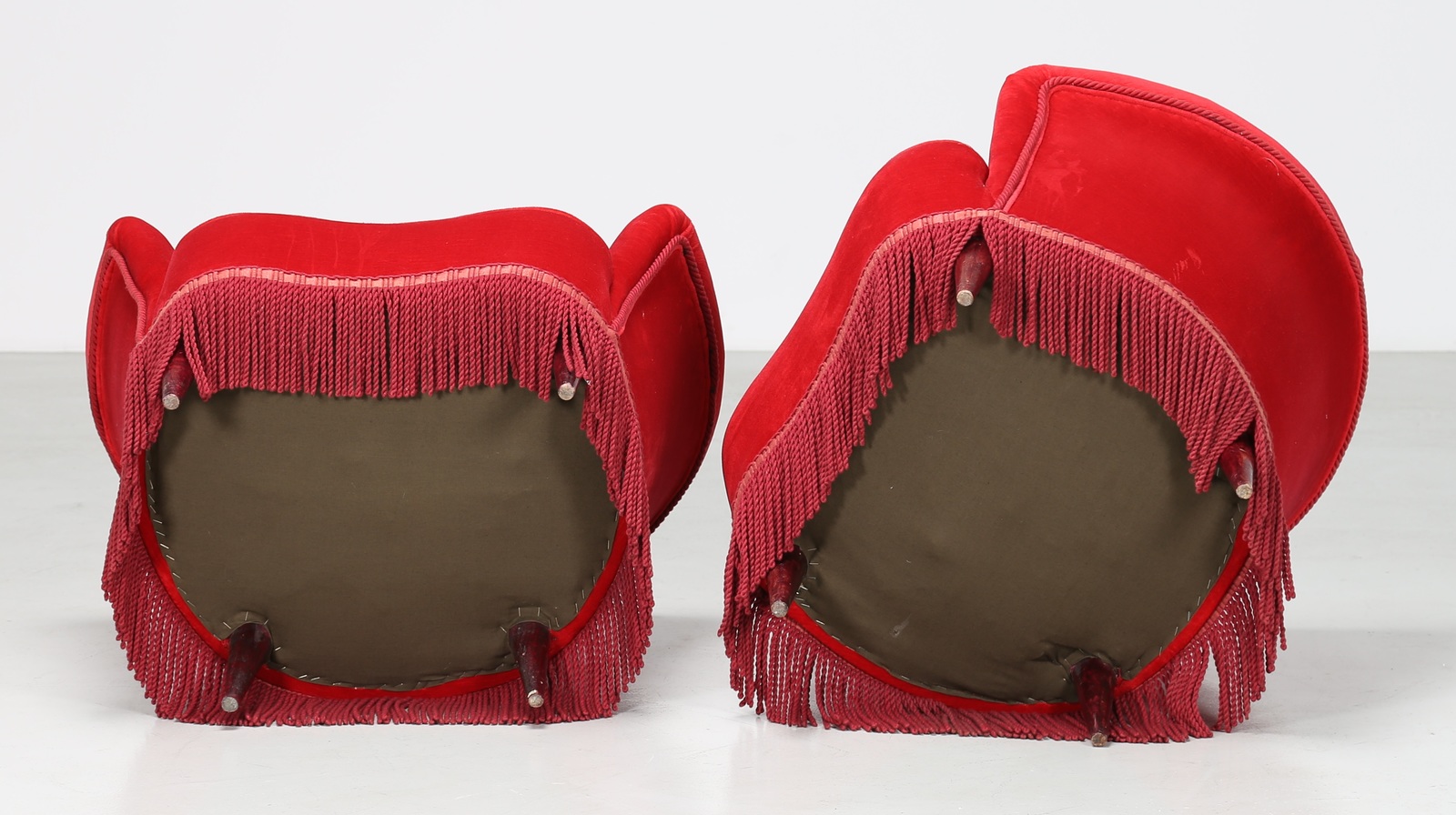 MANIFATTURA ITALIANA Coppia poltrone in tessuto e legno. -. Cm 78,00 x 71,00...