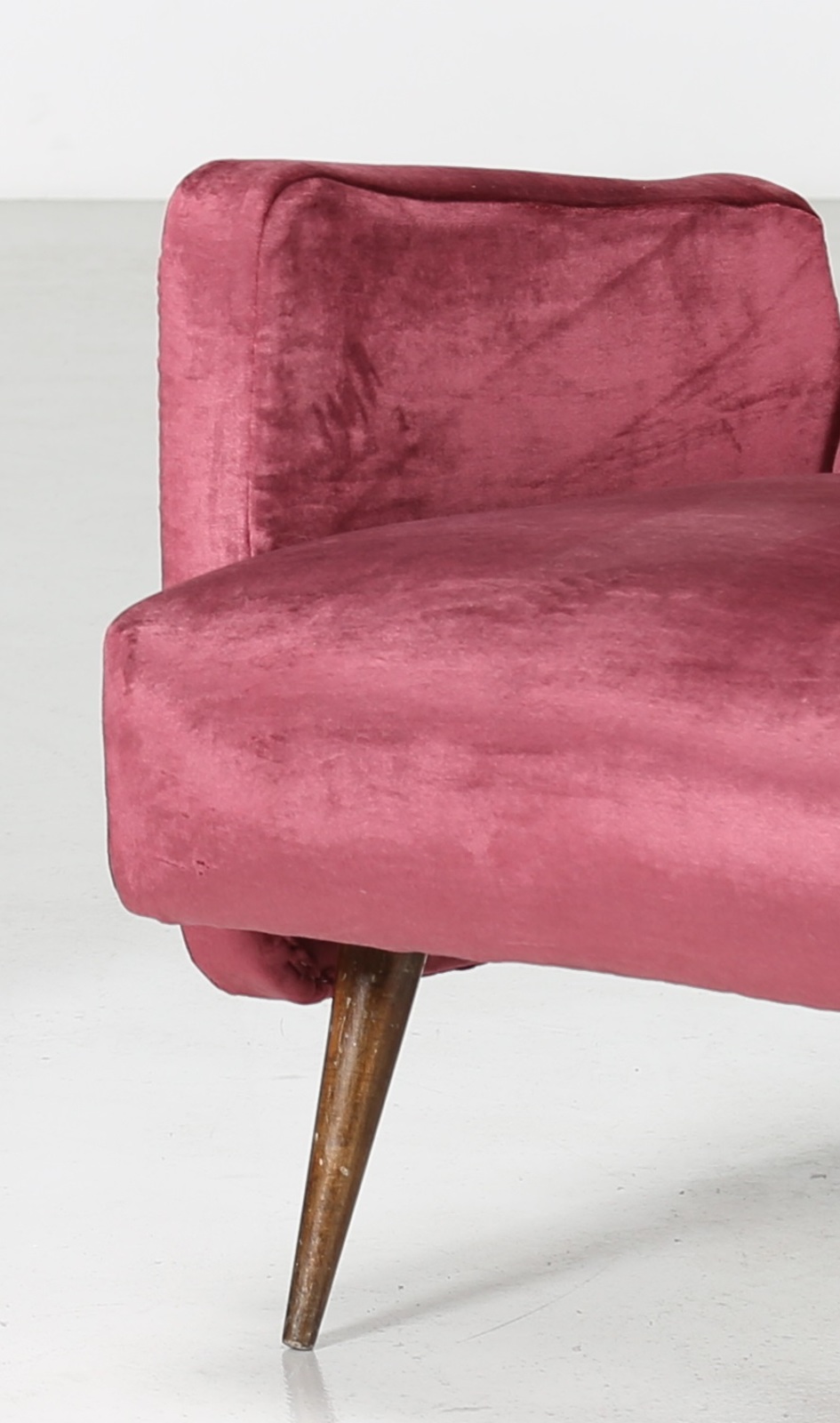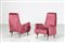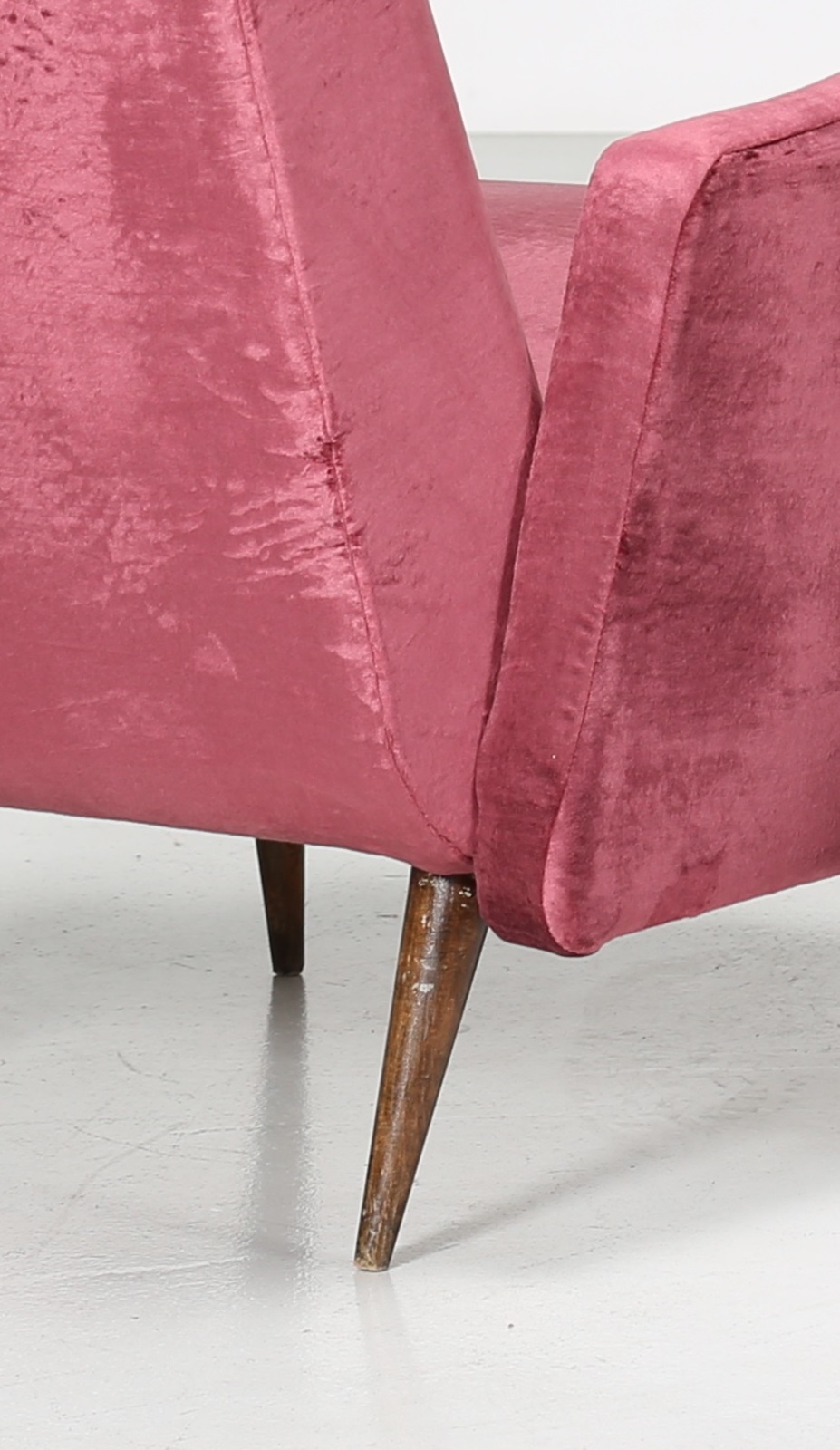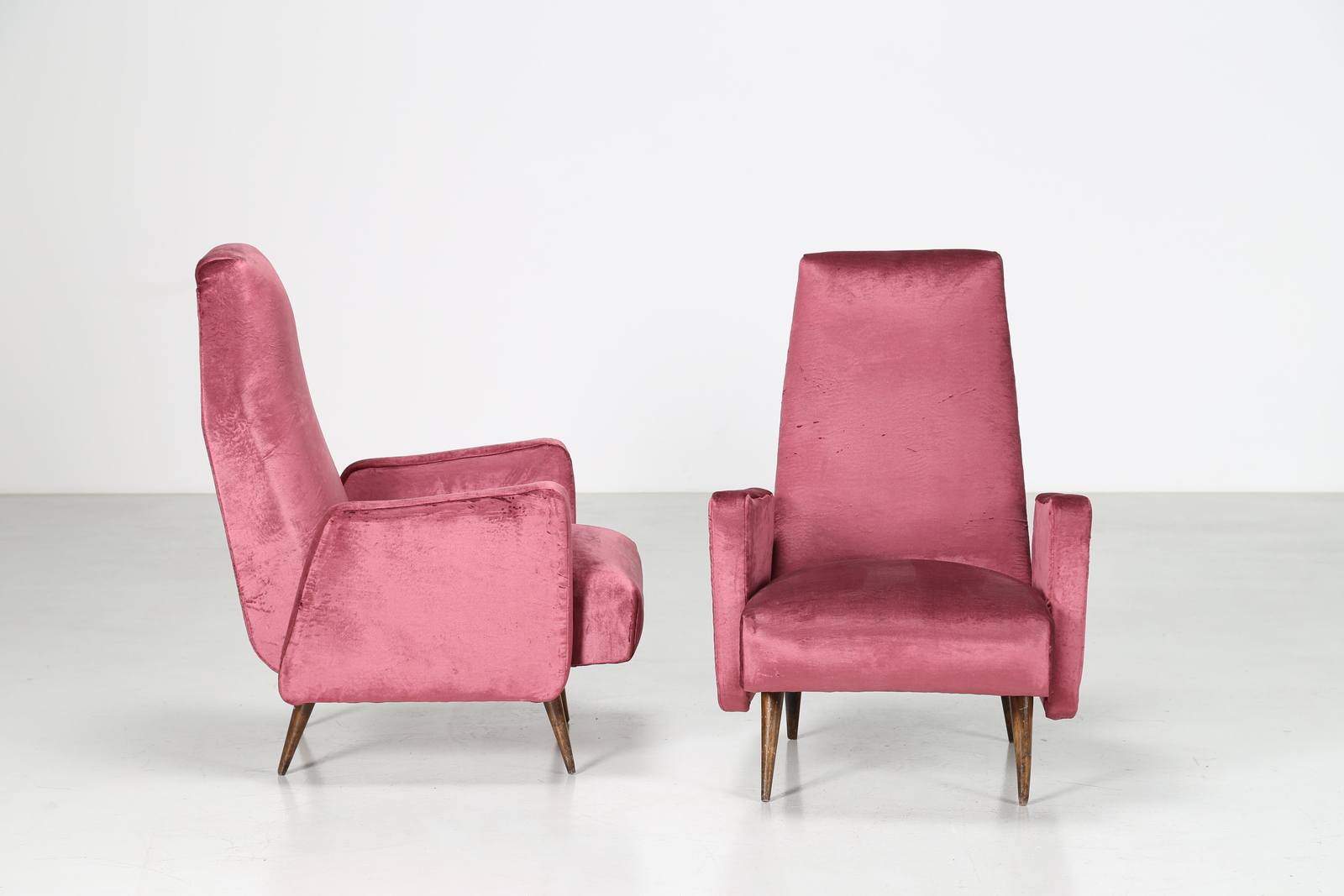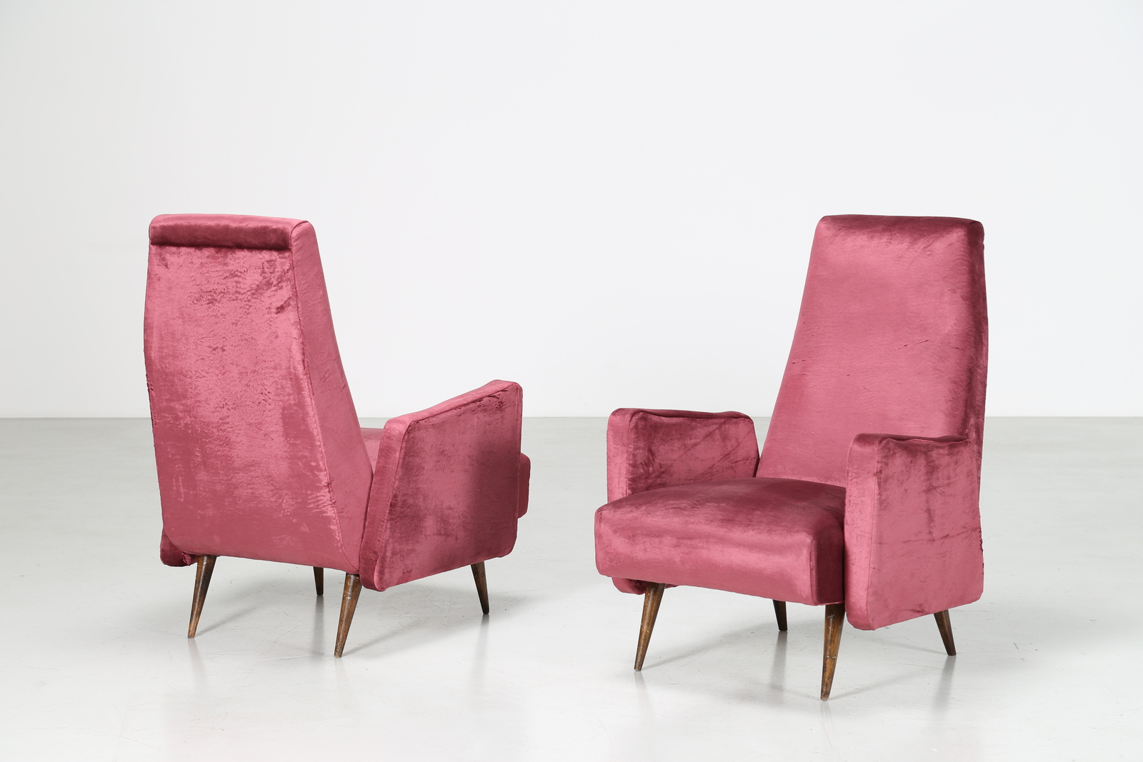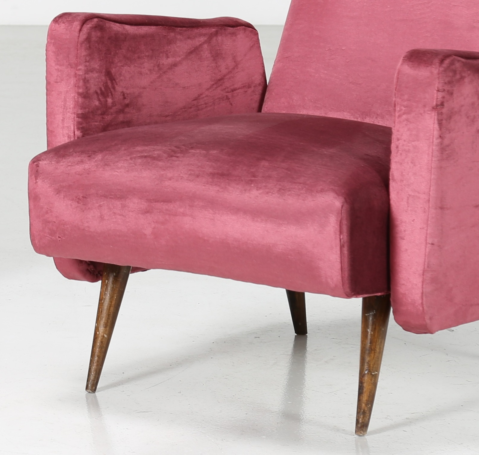 MANIFATTURA ITALIANA Coppia di poltrone in legno e tessuto, anni 50. . Cm...