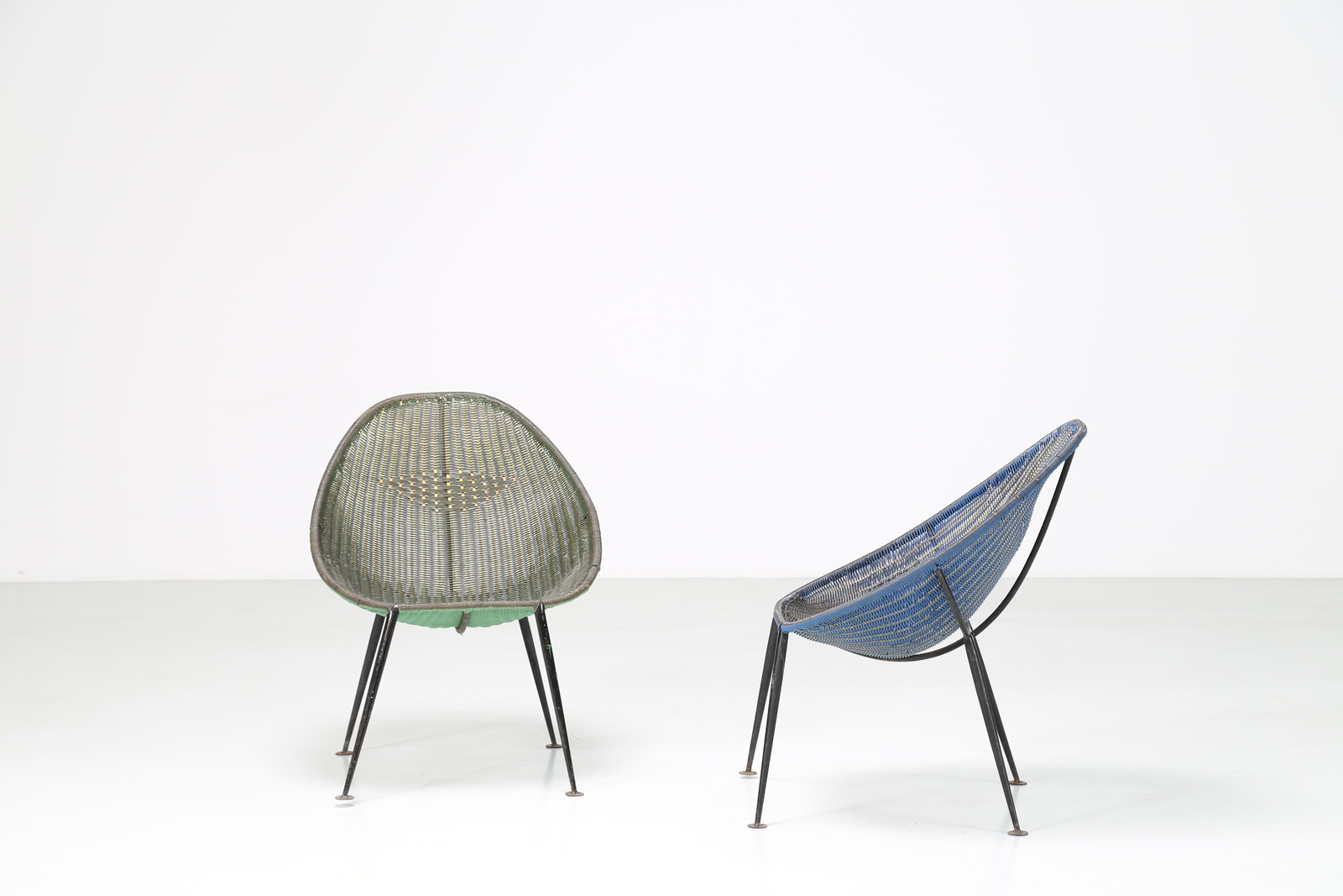 Lot 304 | MANIFATTURA ITALIANA Coppia poltroncine cesta in tondino di ferro e plastica,...