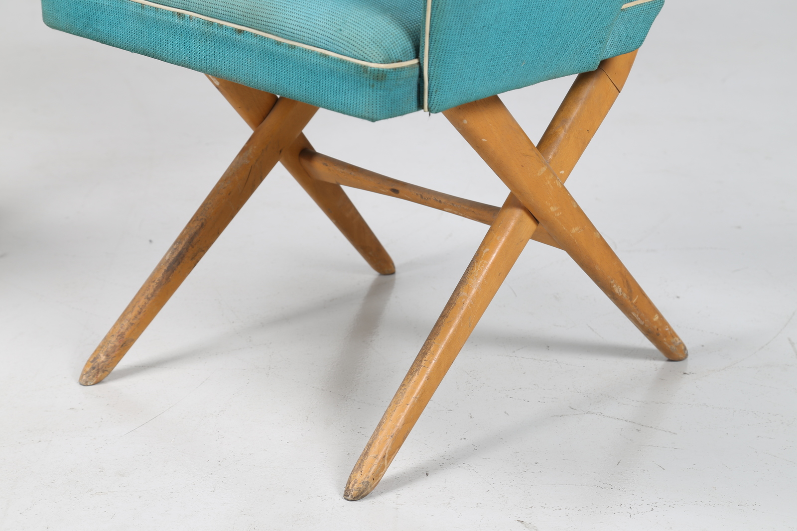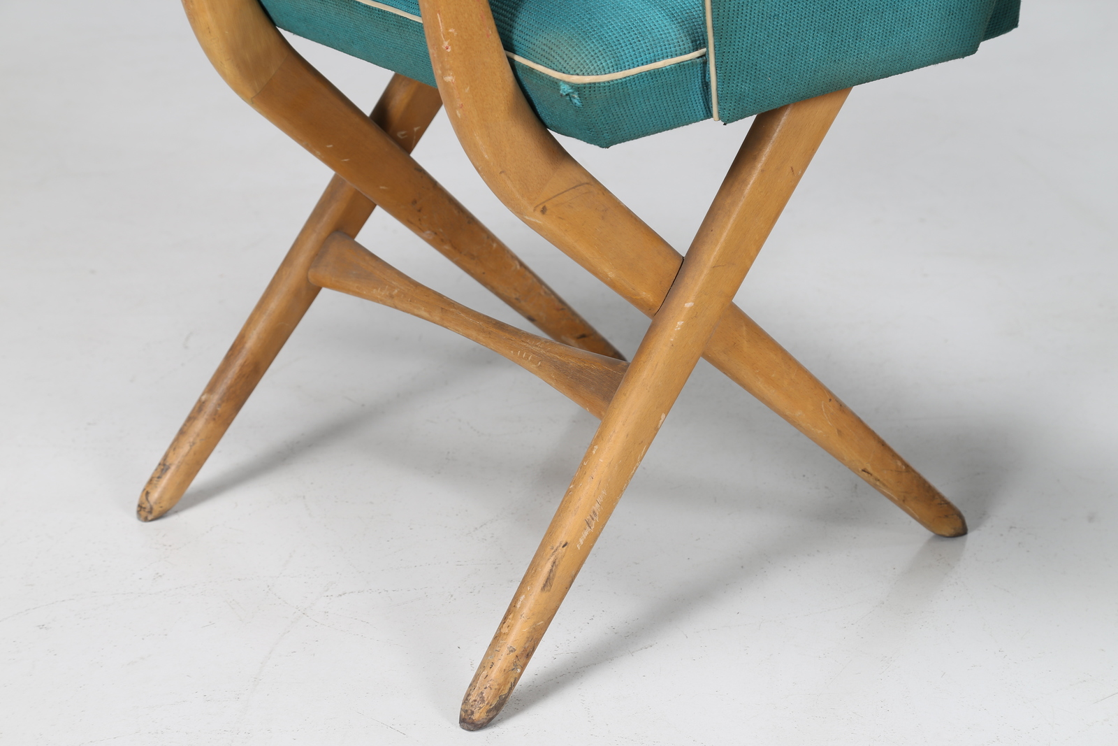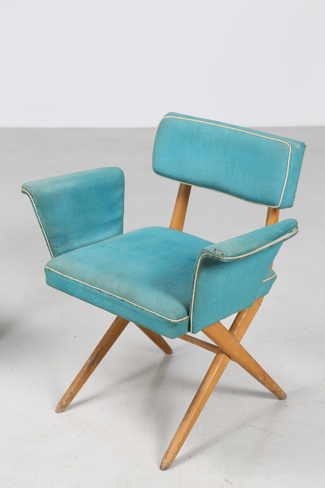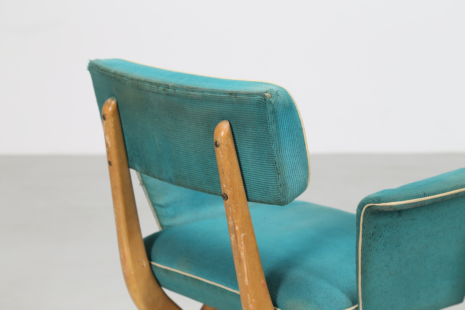 Lot 308 | MANIFATTURA ITALIANA Sette poltroncine in faggio e tessuto originale, anni 50...