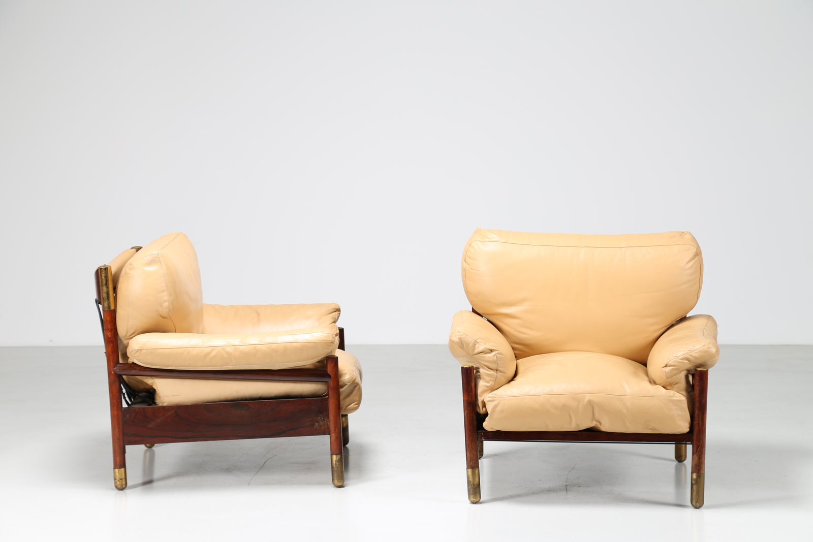 DE CARLI CARLO (1910 - 1999) Coppia di poltrone in pelle legno e ottone, mod....