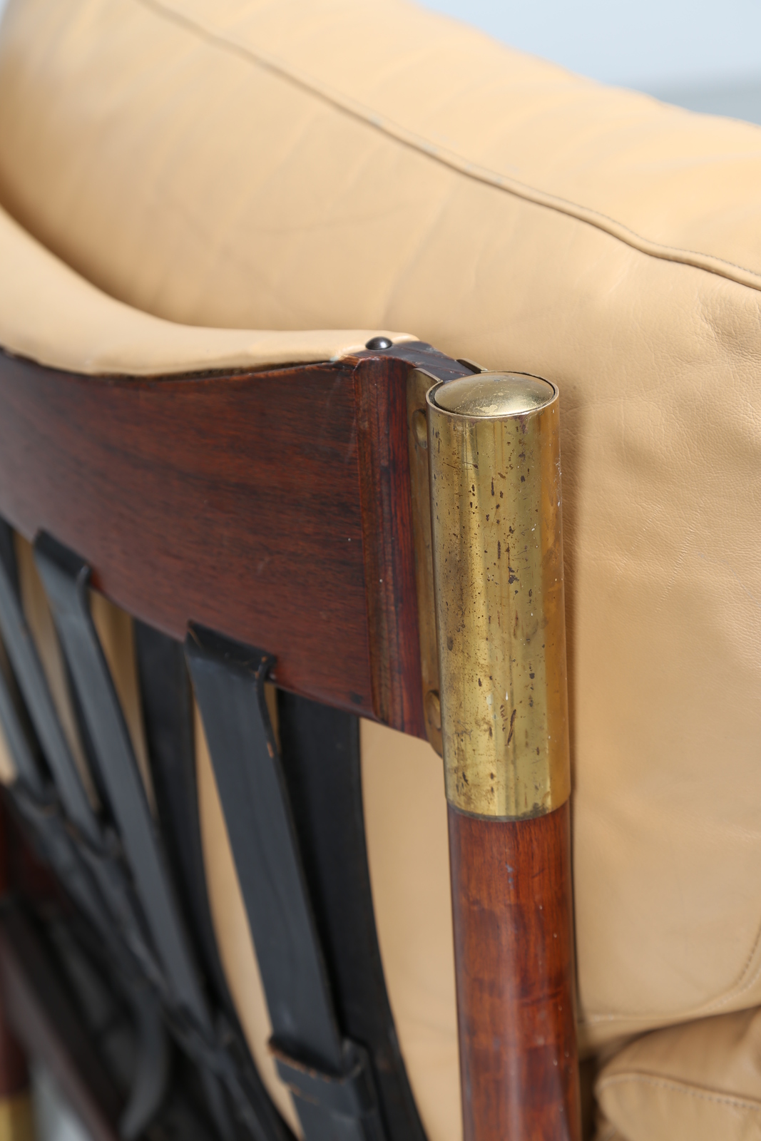 DE CARLI CARLO (1910 - 1999) Coppia di poltrone in pelle legno e ottone, mod. Sella per Sormani . -. Cm 100,00 x 84,00 x 96,00.
