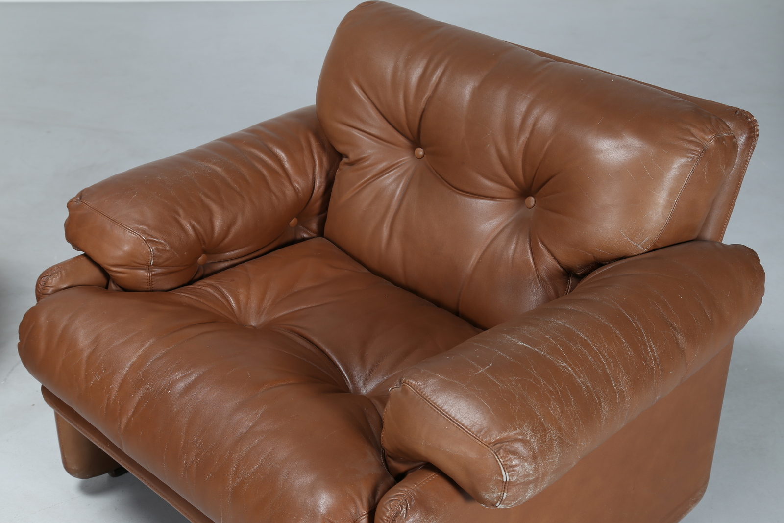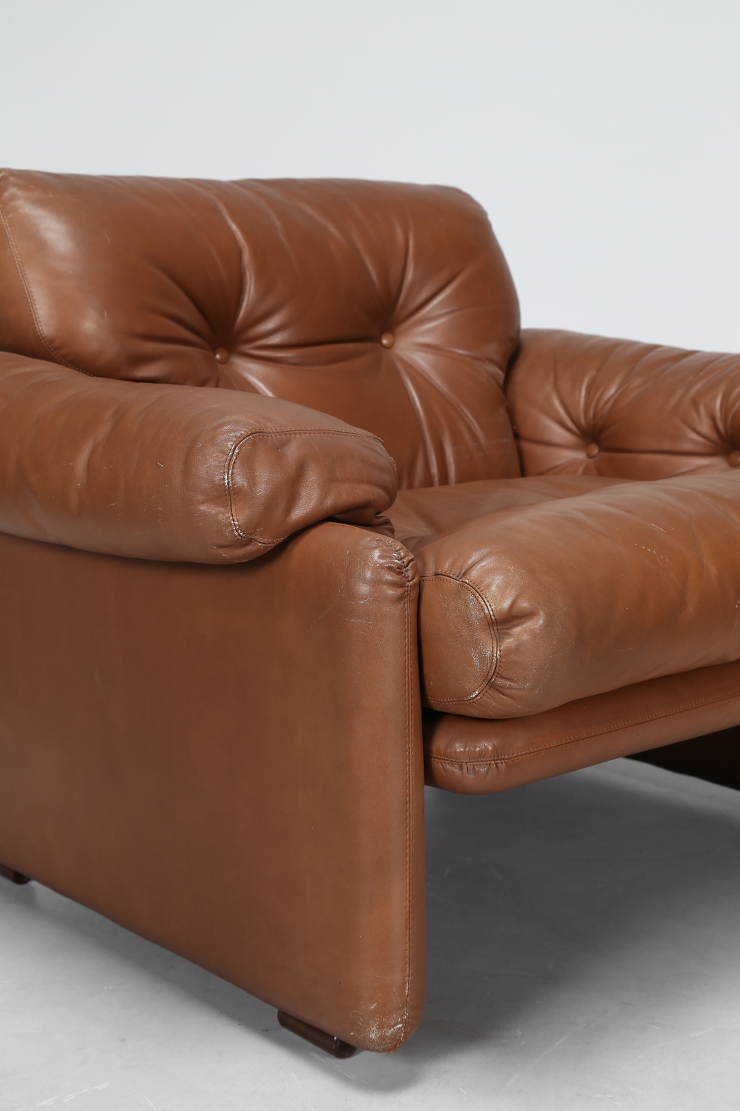 Lot 320 | SCARPA TOBIA (n. 1935) Coppia di poltrone in legno con rivestimento in pelle,...