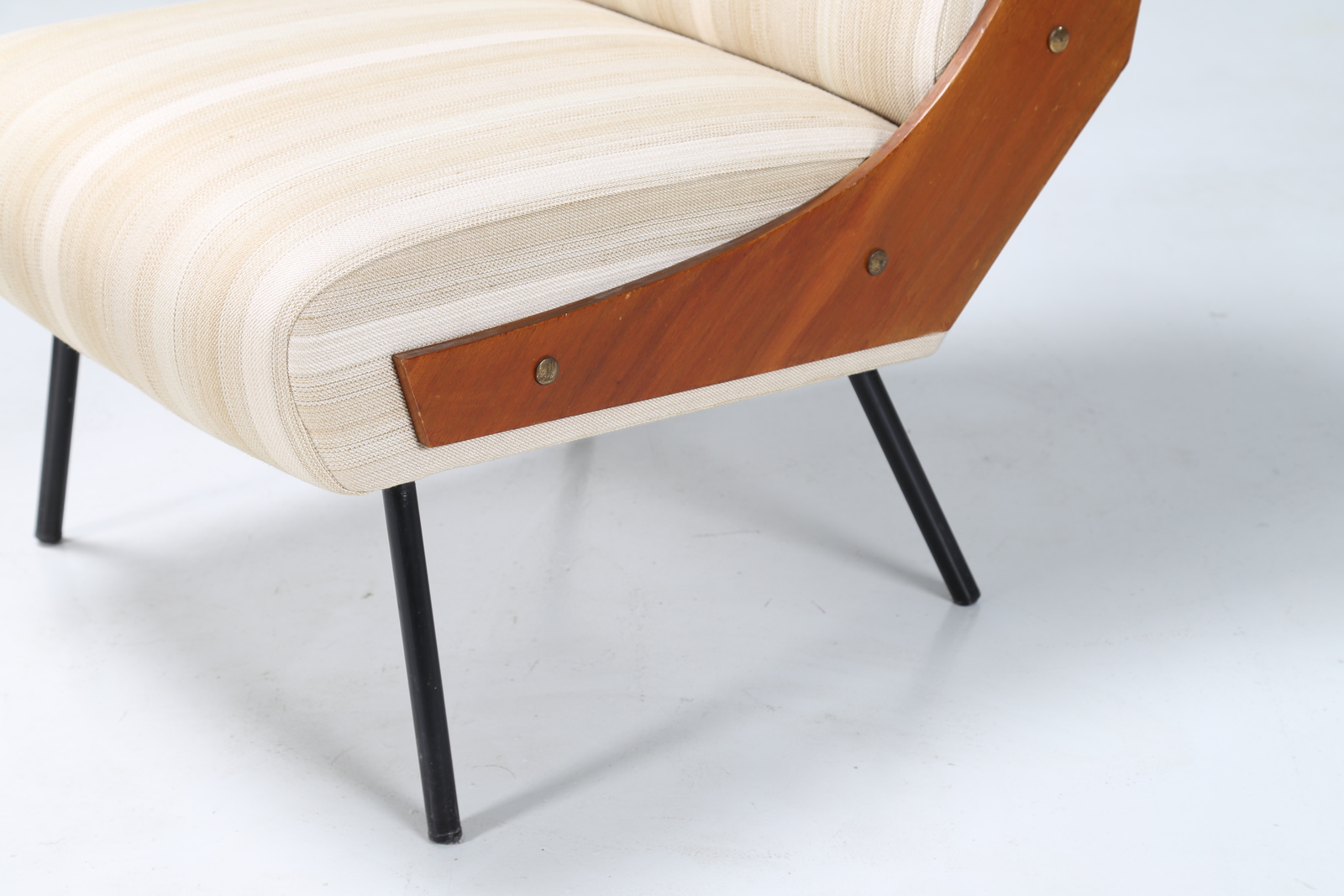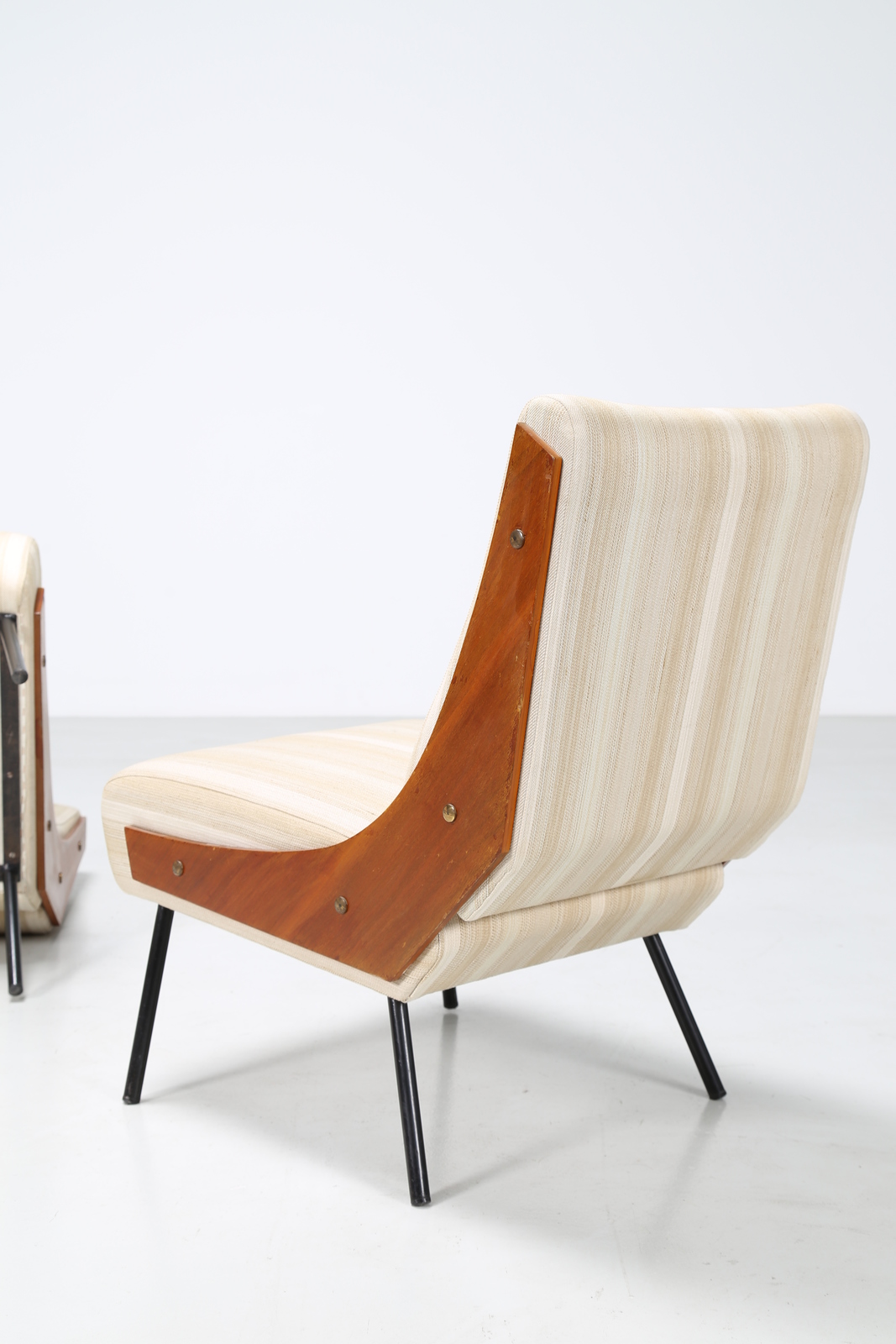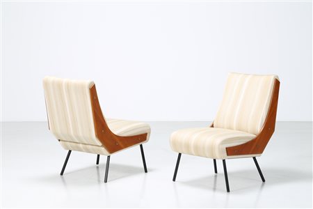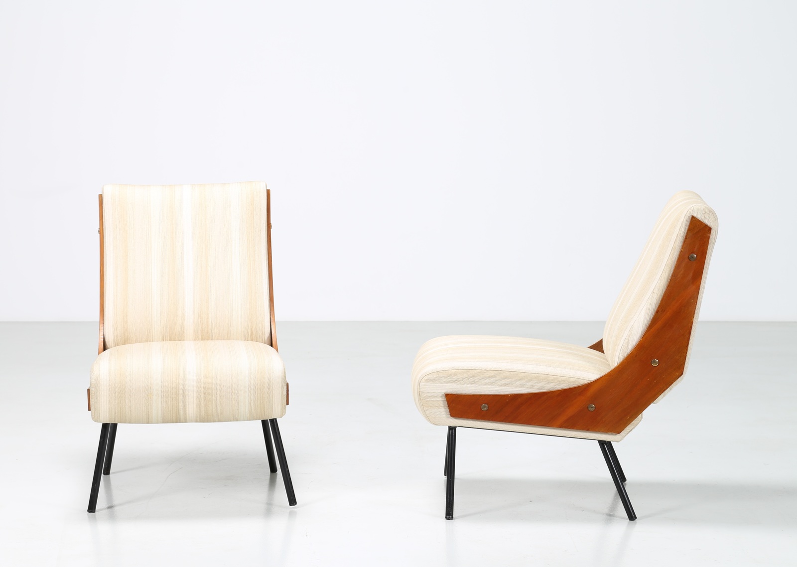 AUGUSTO MAGNAGHI E MARIO TERZAGHI Attrib. Coppia poltrone in legno, metallo laccato e stoffa. -. Cm 54,00 x 82,00 x 70,00.