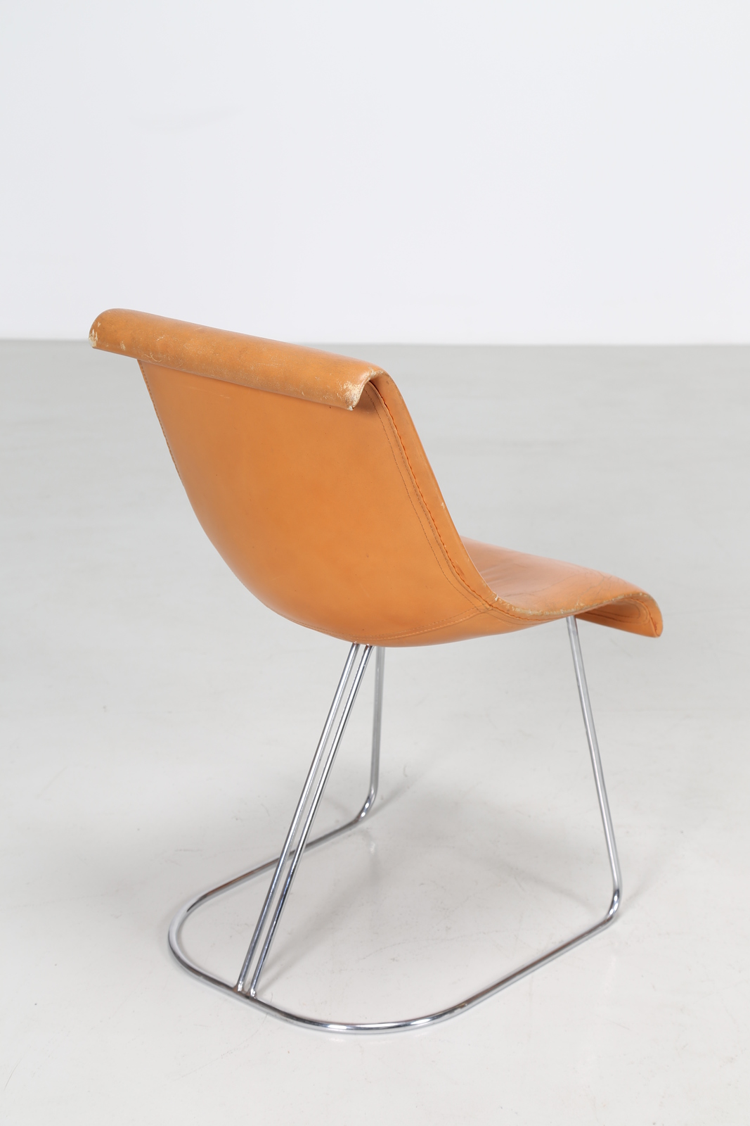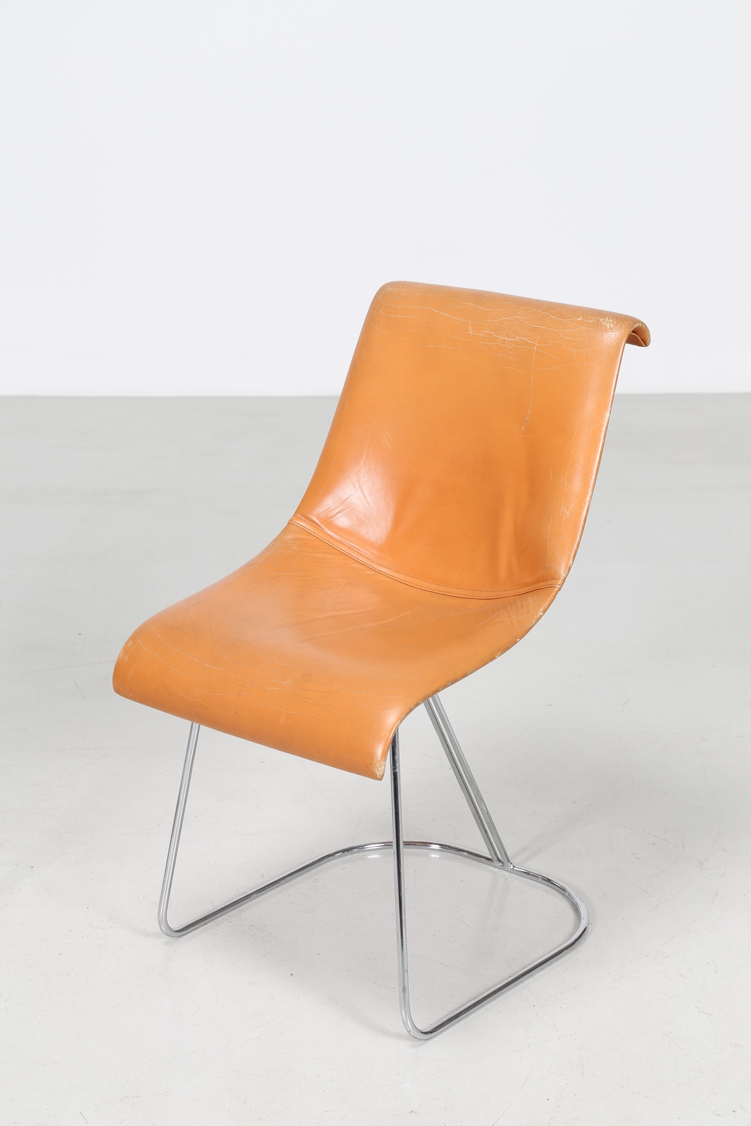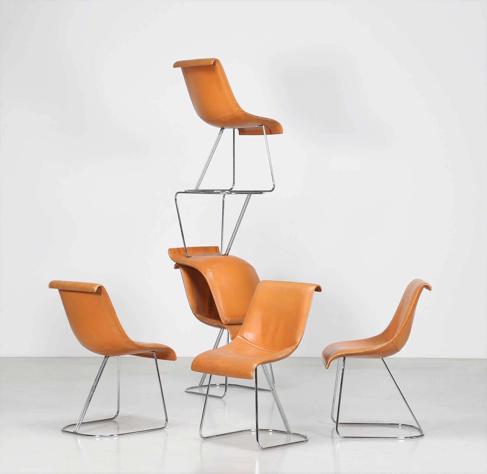 INTROINI VITTORIO Sei sedie in metallo cromato e pelle per saporiti . . Cm...