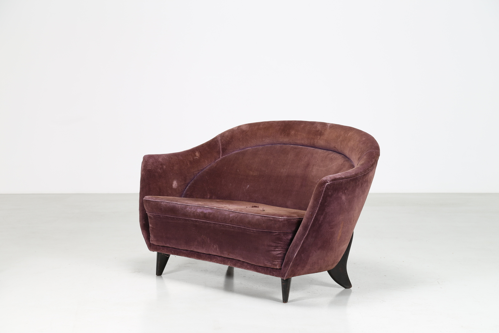 VERONESI GUGLIELMO Divanetto in legno e tessuto originale per Isa anni 50. -....