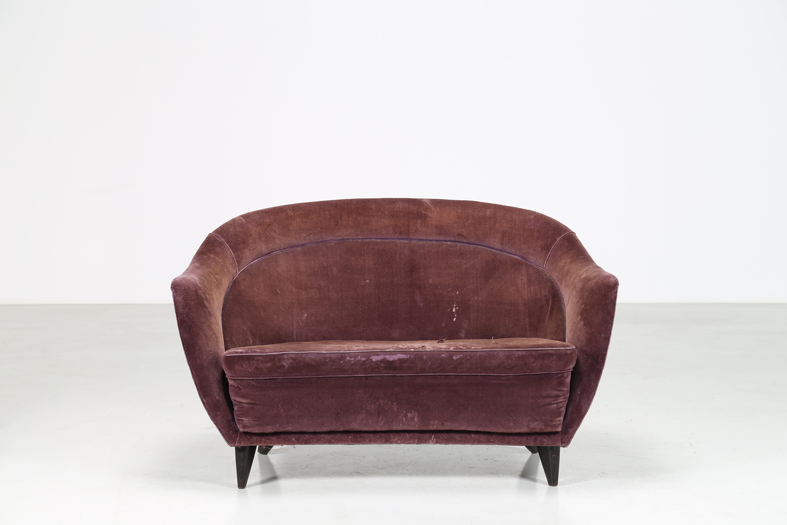 VERONESI GUGLIELMO Divanetto in legno e tessuto originale per Isa anni 50. -. Cm 133,00 x 79,00 x 83,00.