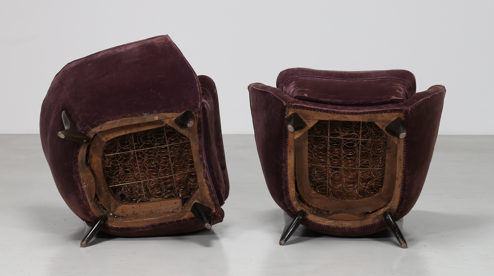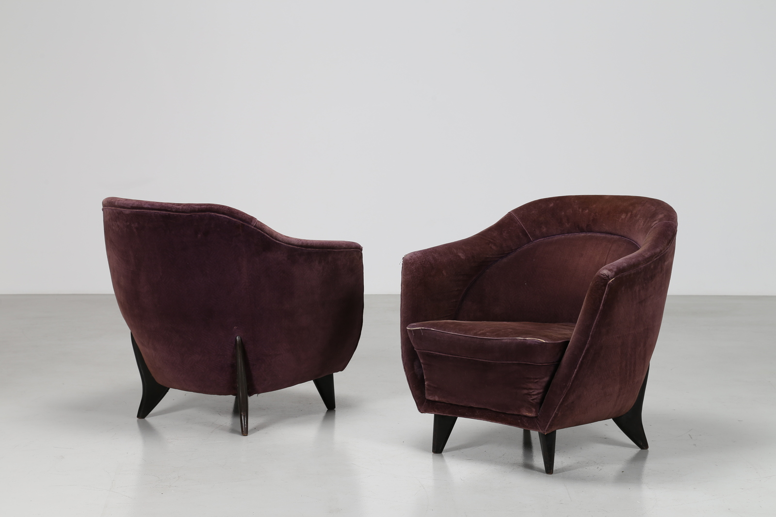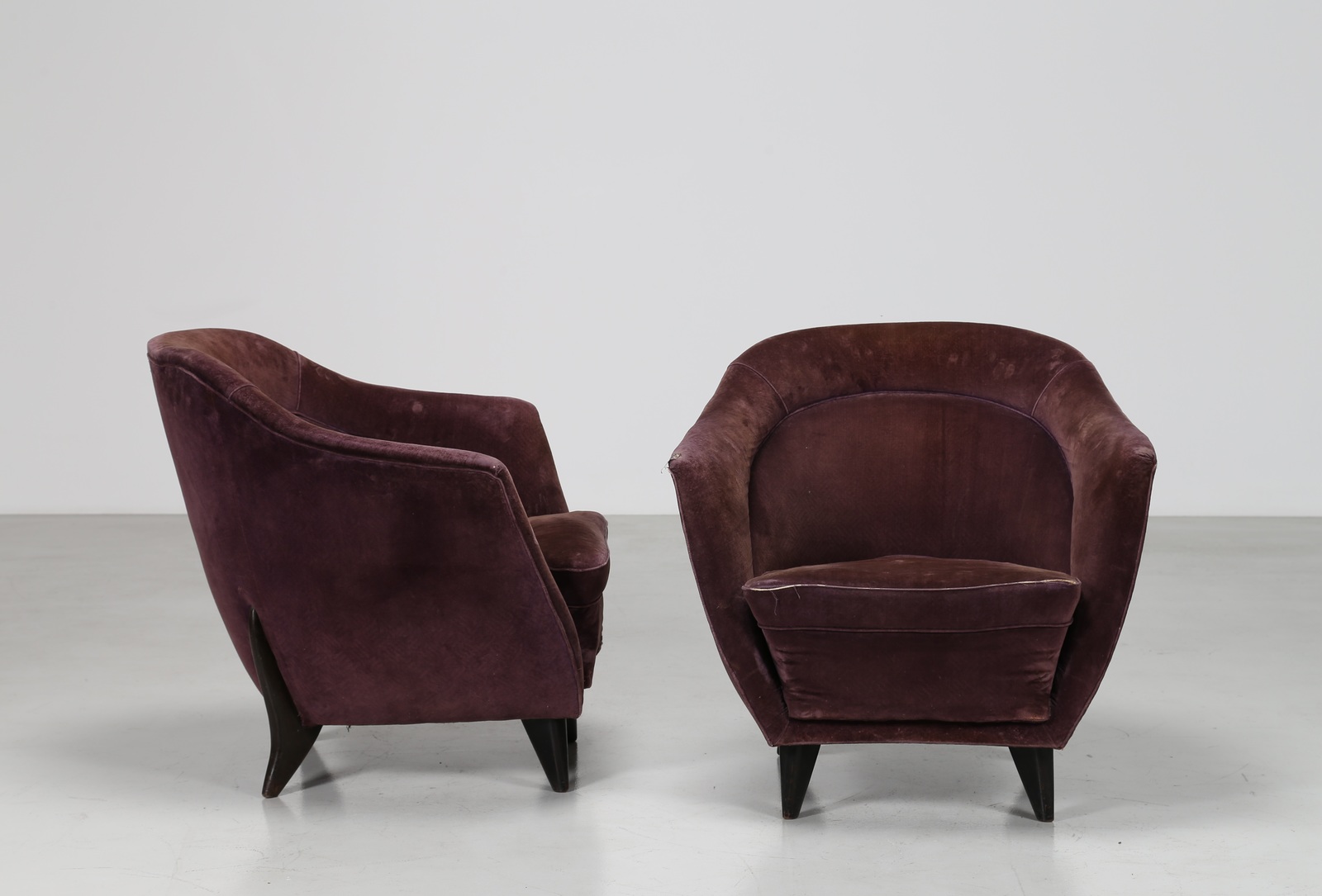 VERONESI GUGLIELMO Coppia di poltrone in legno e tessuto originale per Isa,...