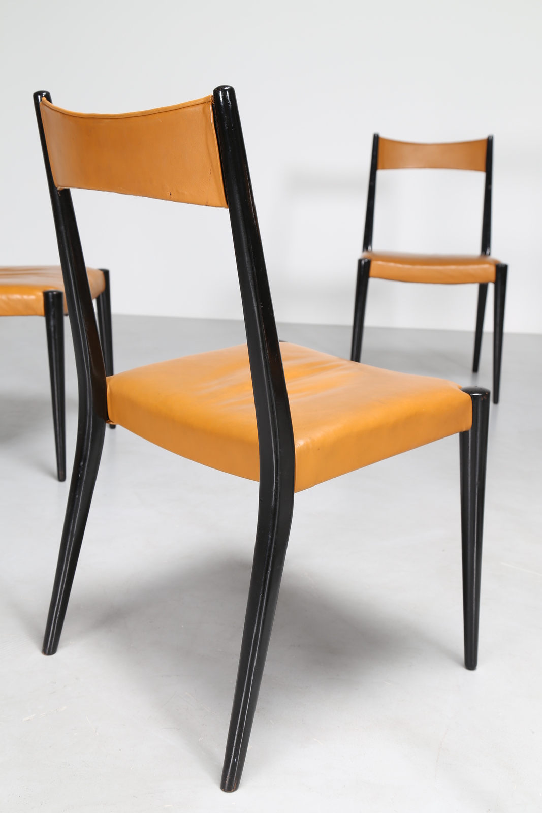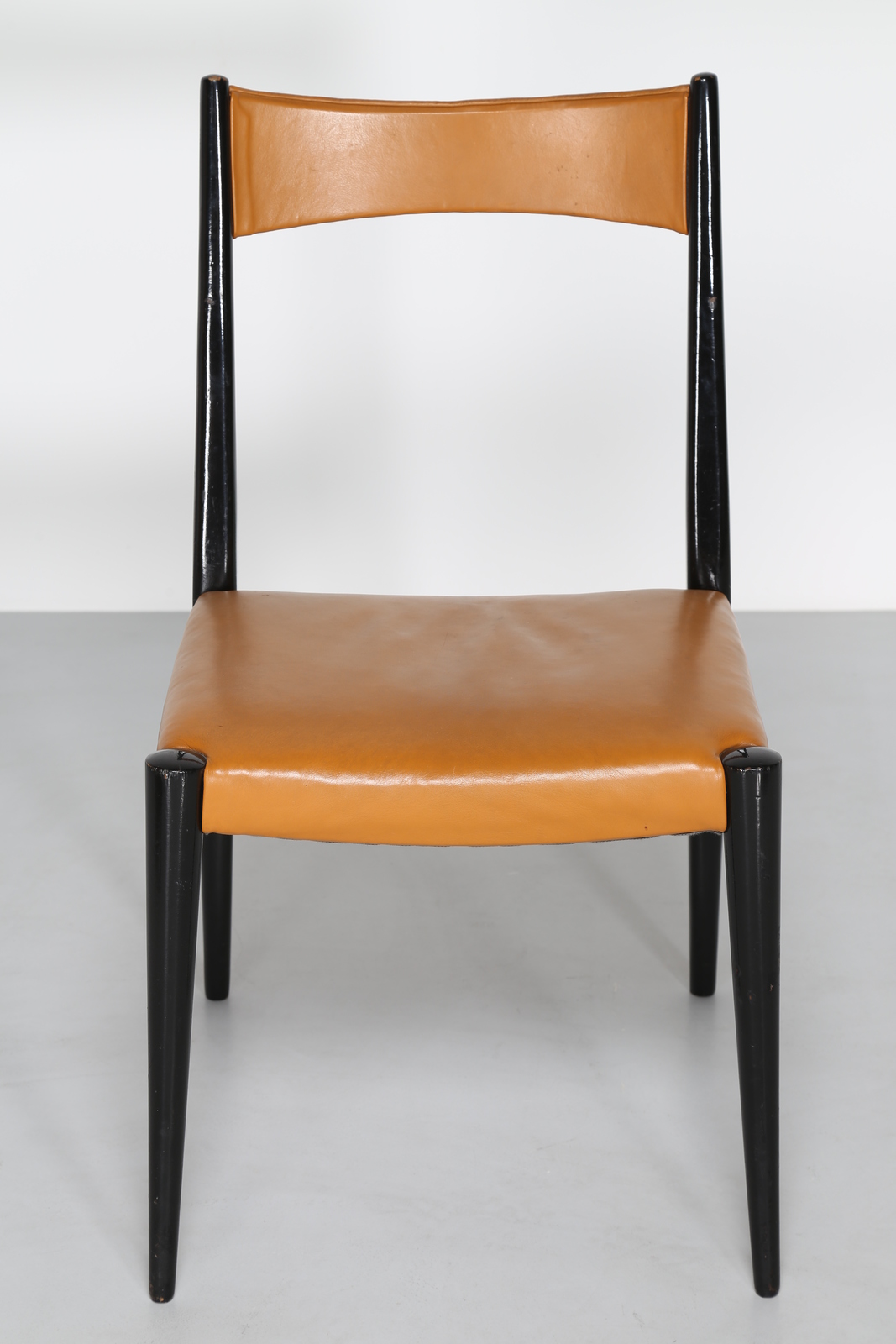 PRAUN ANNA-LÜLJA Sei sedie da pranzo in legno di rosa e sky color cognac, per Wiesner-Hager, anni 50. Pubblicazioni; Eva B. Ottilinger Möbeldesign d. 50 er Jahre, pag. 136 . -. Cm 45,50 x 80,00 x 48,50.