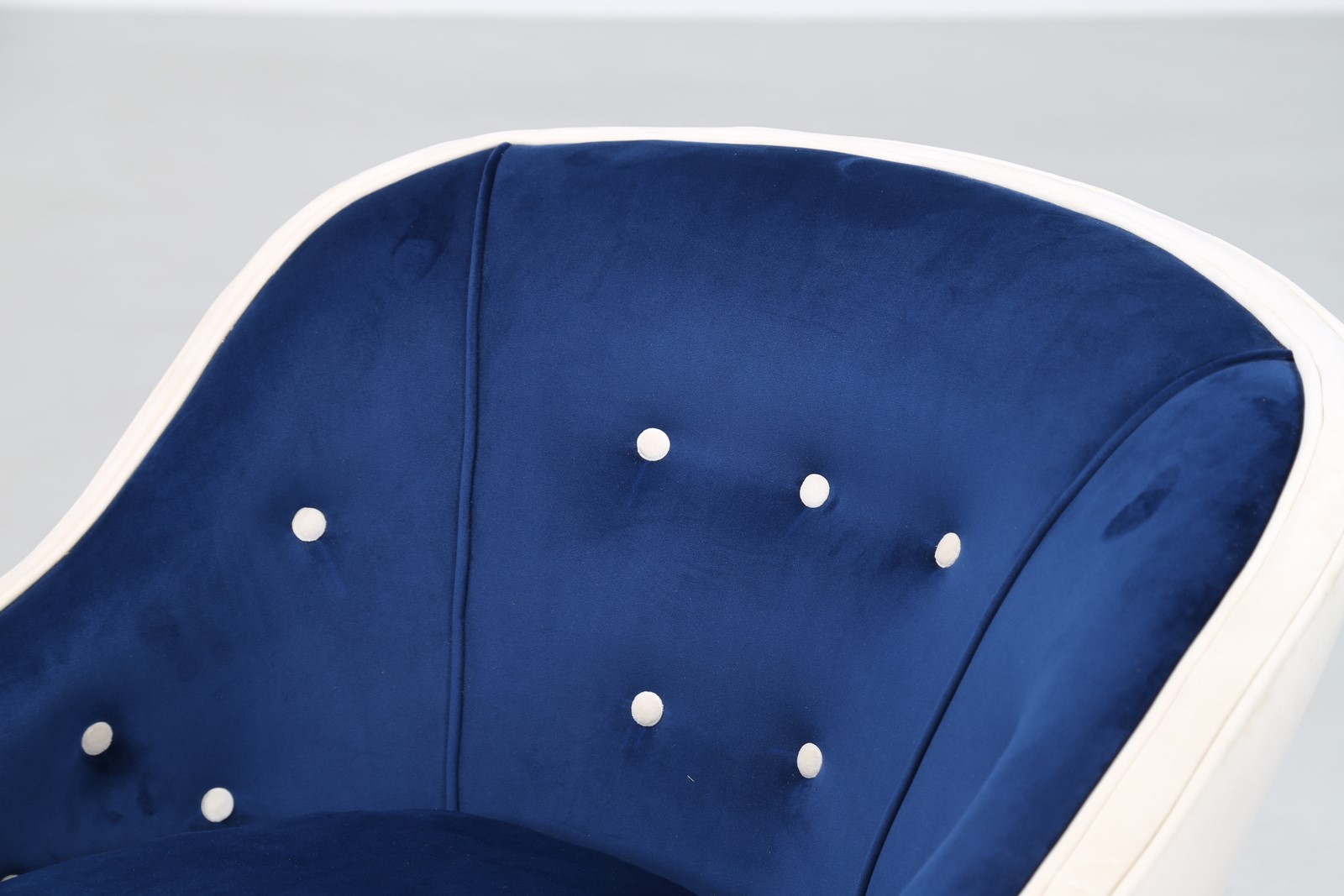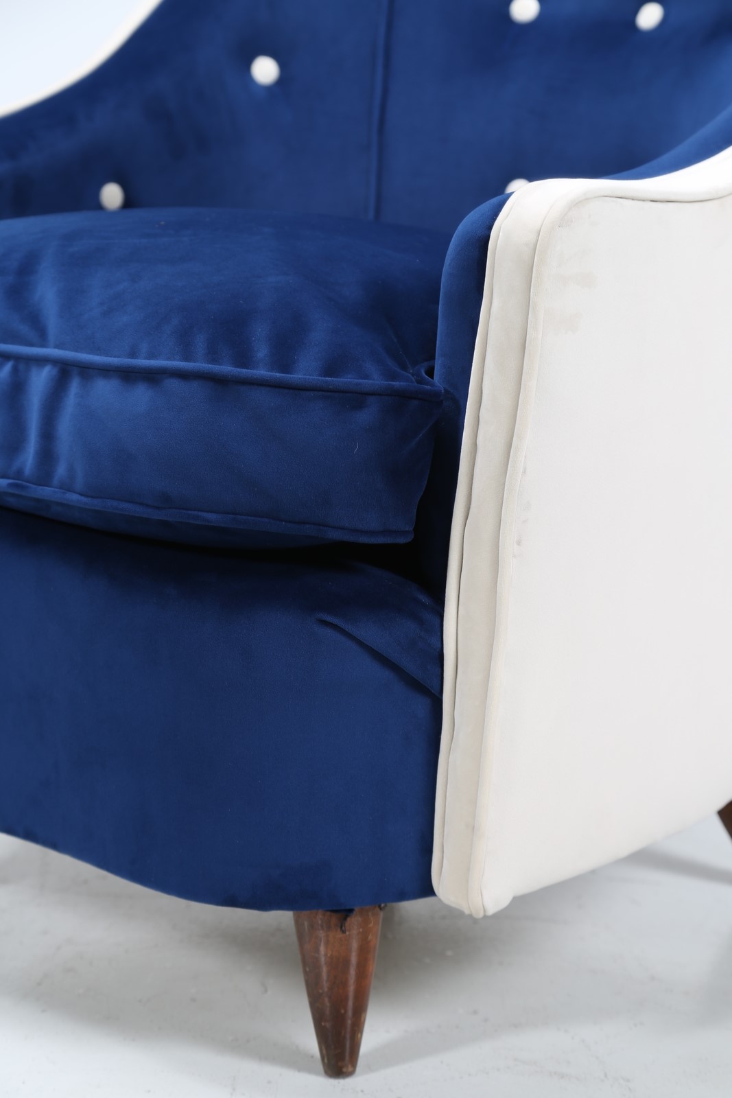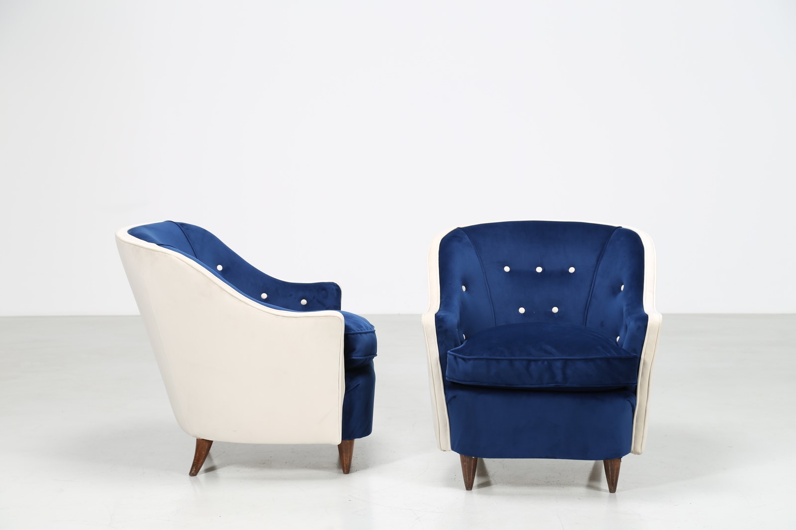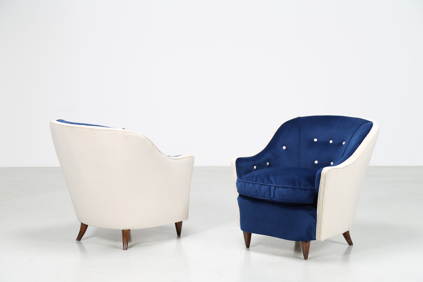 CASA E GIARDINO Coppia di poltrone in legno e tessuto bicolore, anni 40 . -....