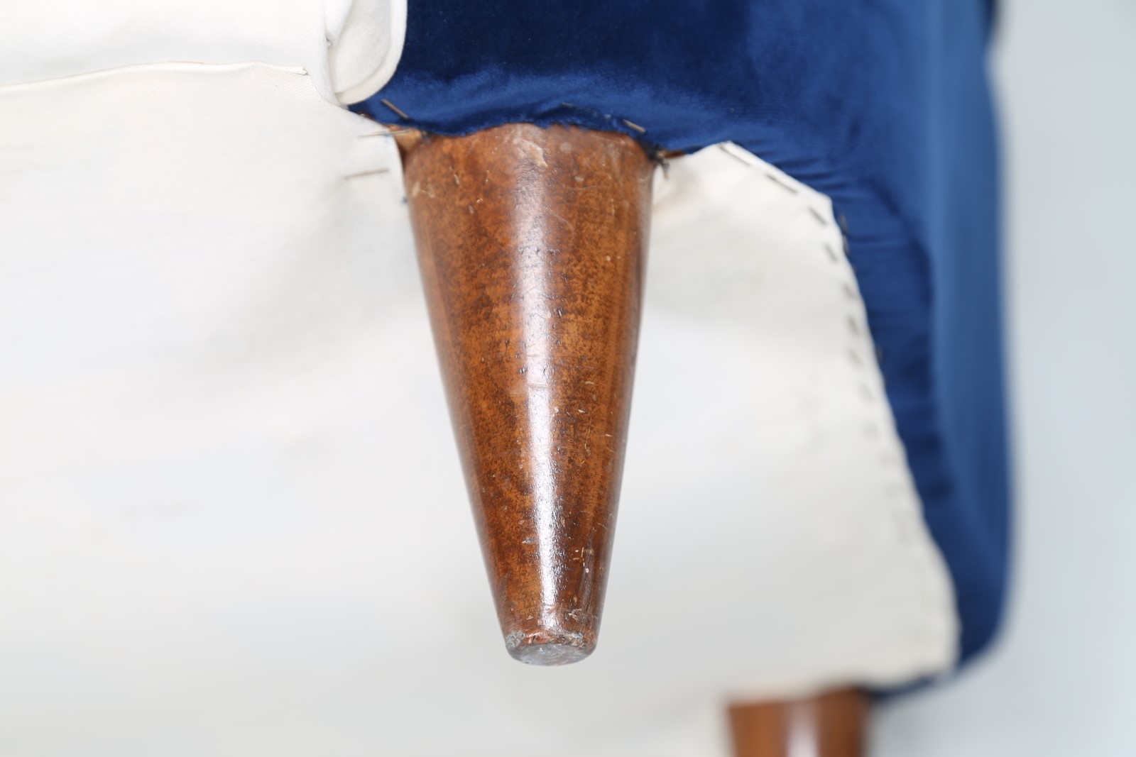CASA E GIARDINO Coppia di poltrone in legno e tessuto bicolore, anni 40 . -. Cm 75,00 x 77,00 x 83,00.