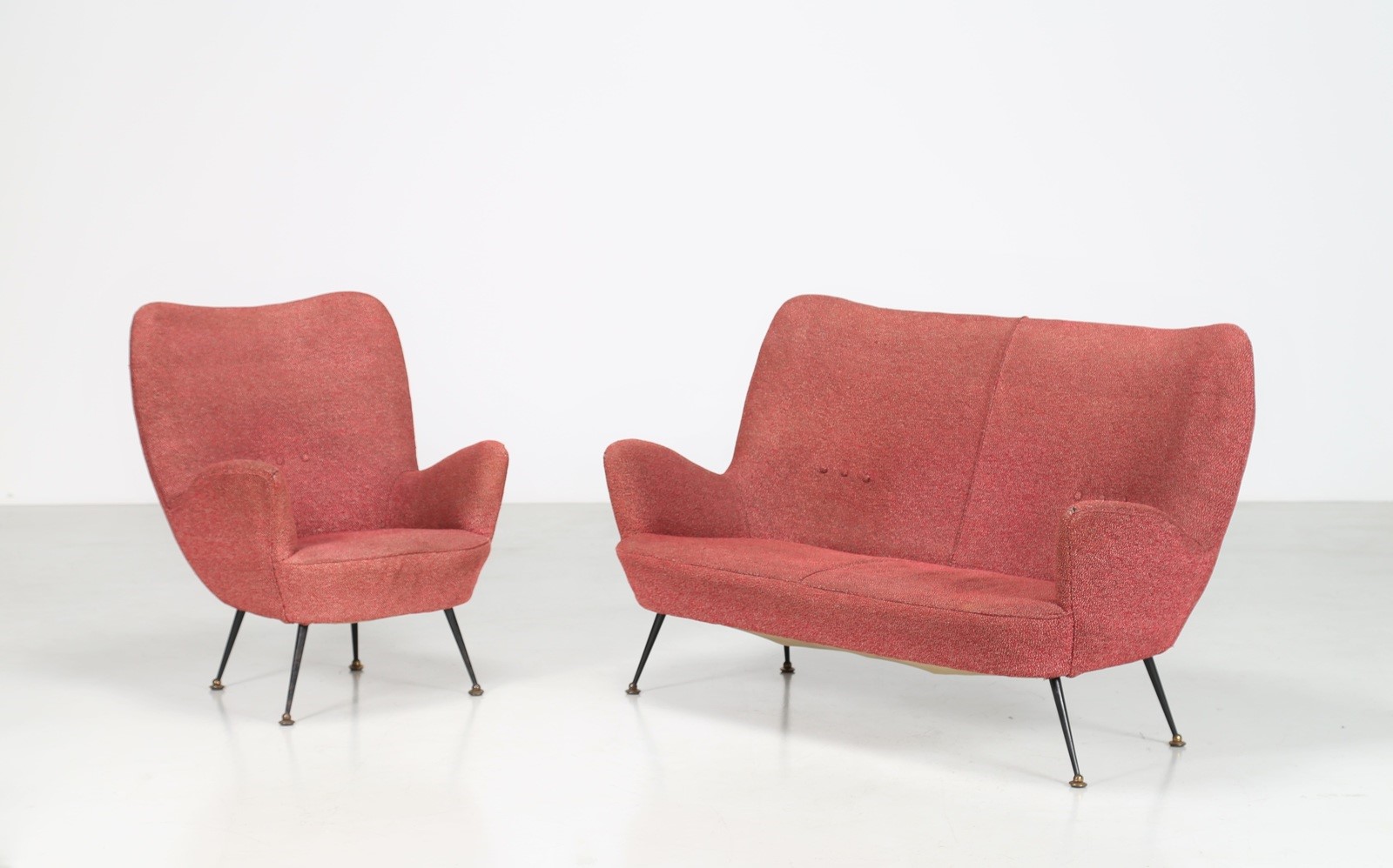 Lot 354 | LA PERMANENTE MOBILI CANTU’ Divanetto e poltrona in metallo laccato puntali...