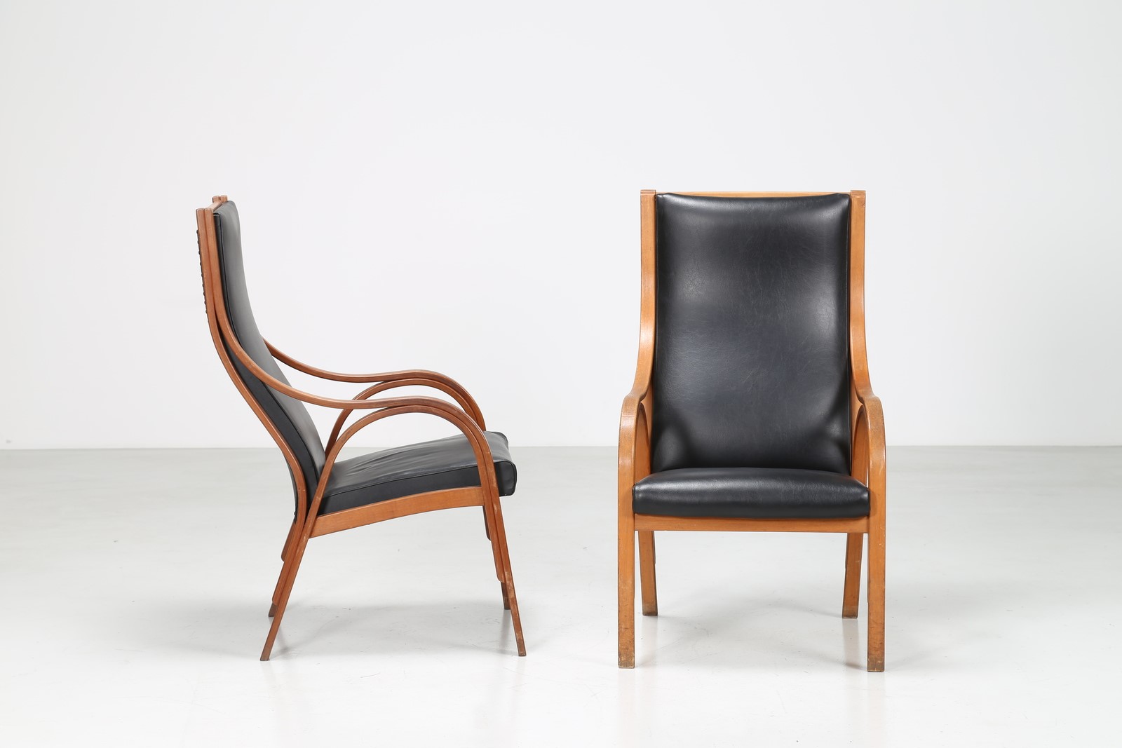 VITTORIO GREGOTTI, LODOVICO MENEGHETTI, GIOTTO STOPPINO Coppia di poltrone con struttura realizzata in strisce di legno massiccio e sky, per SIM, Italia 1959. Pubblicazioni; G. Gramigna, Repertorio 1950-80, Mondadori, 1985, pag. 131. . -. Cm 55,00 x 107,00 x 70,00.