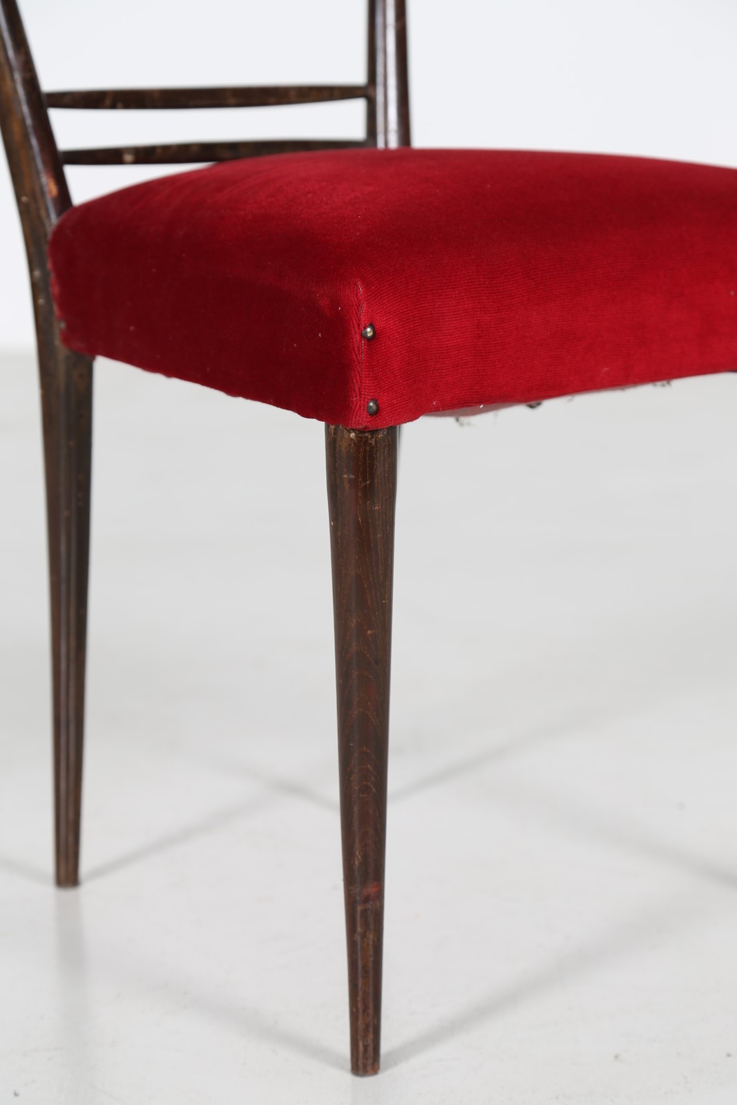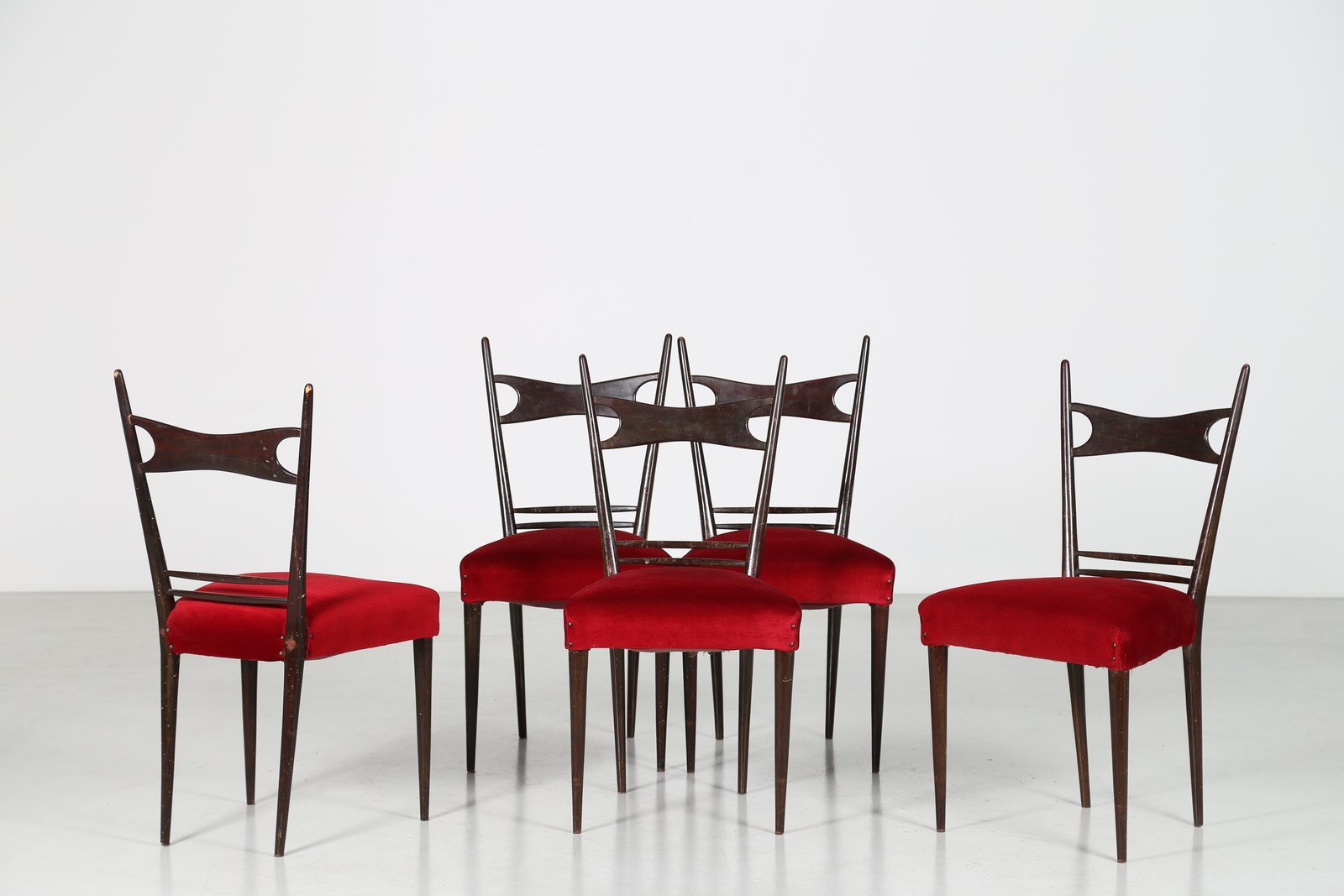 FORNI ULDERICO Cinque sedie in legno e tessuto, anni 50. -. Cm 47,50 x 92,00...