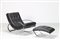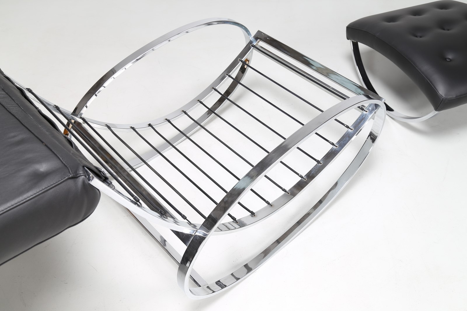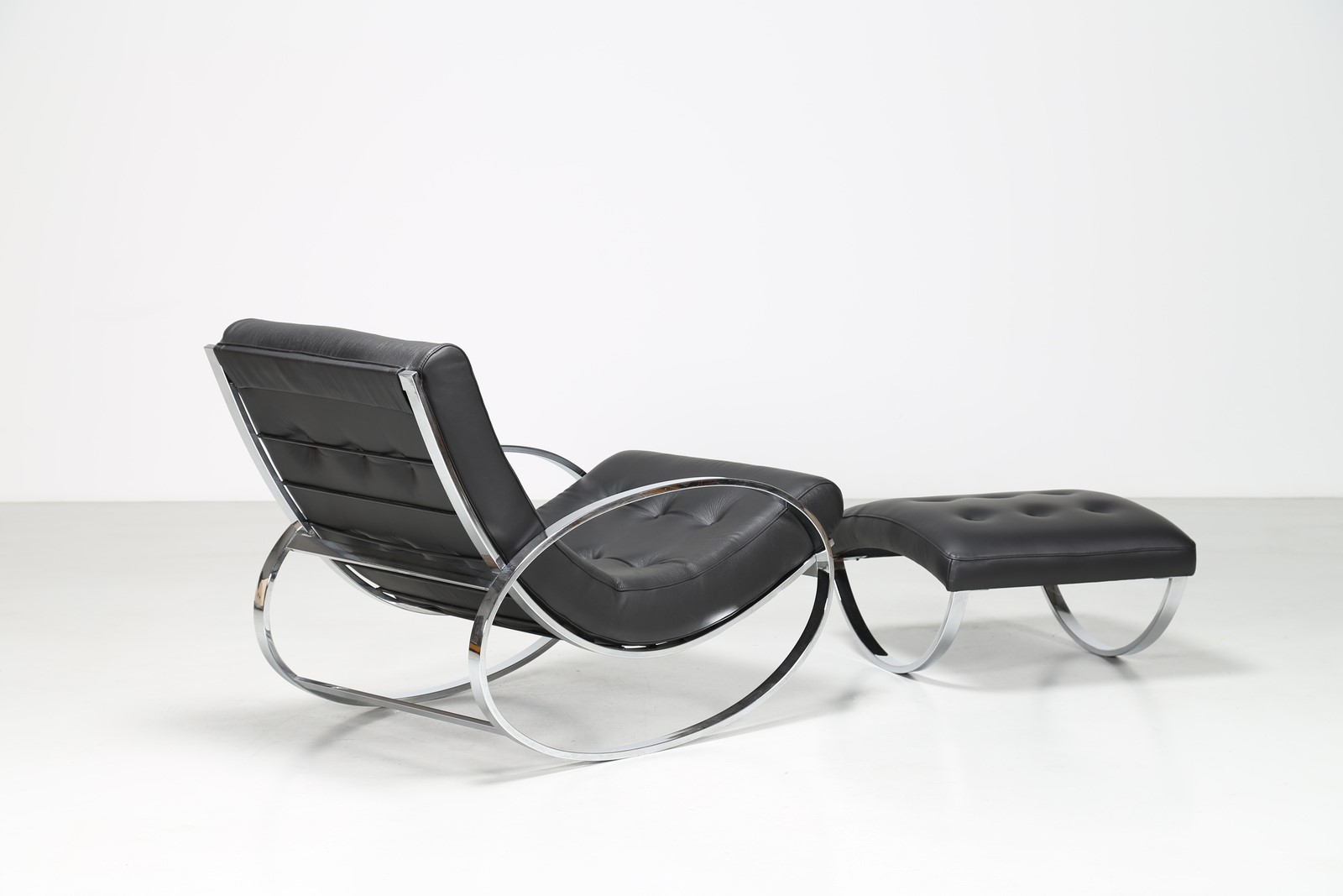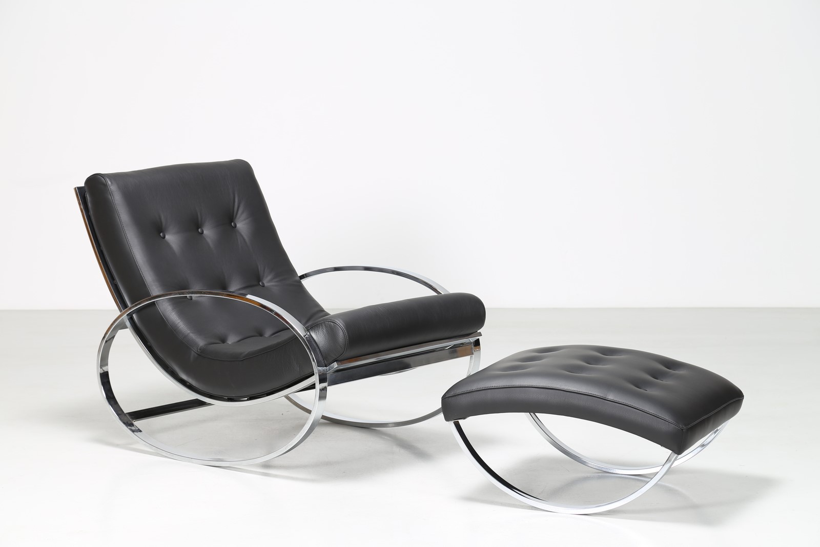 ZEVI RENATO Dondolo e pouf in metallo cromato e sky, . -. Cm 70,00 x 82,00 x 115,00. Misura pouf: 36x66x58