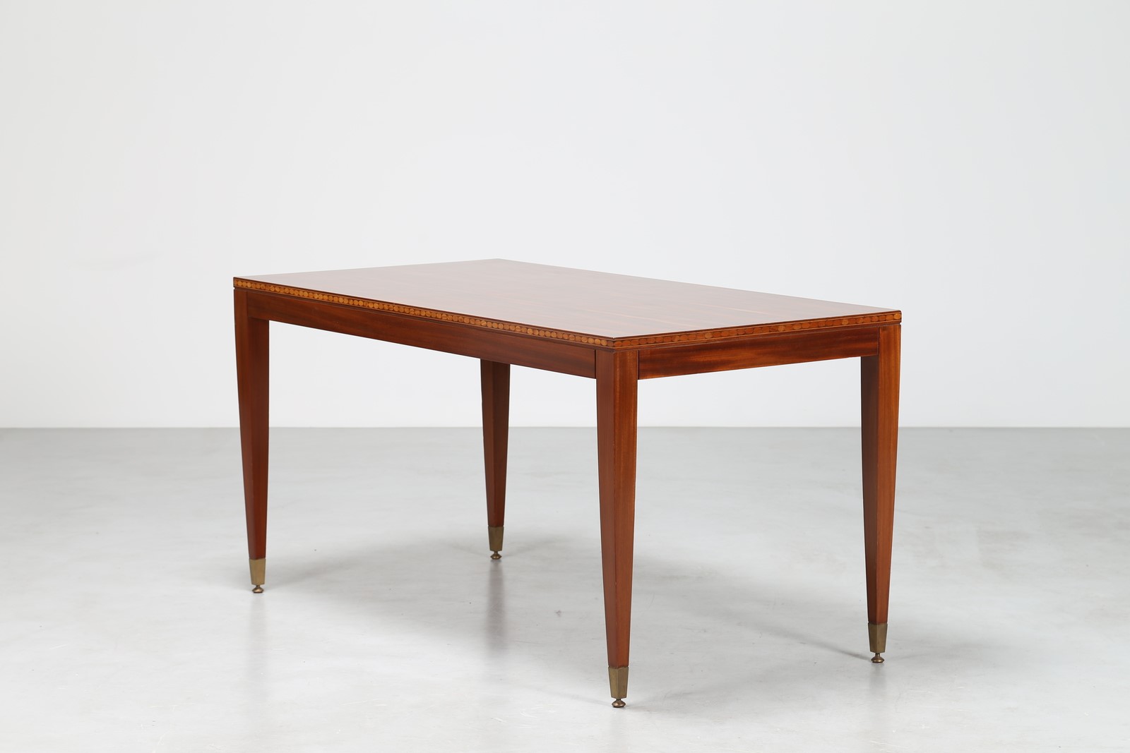 BUFFA PAOLO (1903 - 1970) Tavolo in mogano con intarsi in varie essenze e puntali in ottone, per Marelli & Colico, Cantù, anni 40 . . Cm 150,50 x 76,00 x 66,00.
