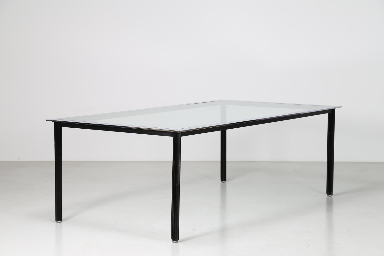 CACCIA DOMINIONI LUIGI (n. 1913) Tavolo in metallo con piano in cristallo mod. T10, per Azucena anni 50. -. Cm 220,00 x 73,00 x 110,00.