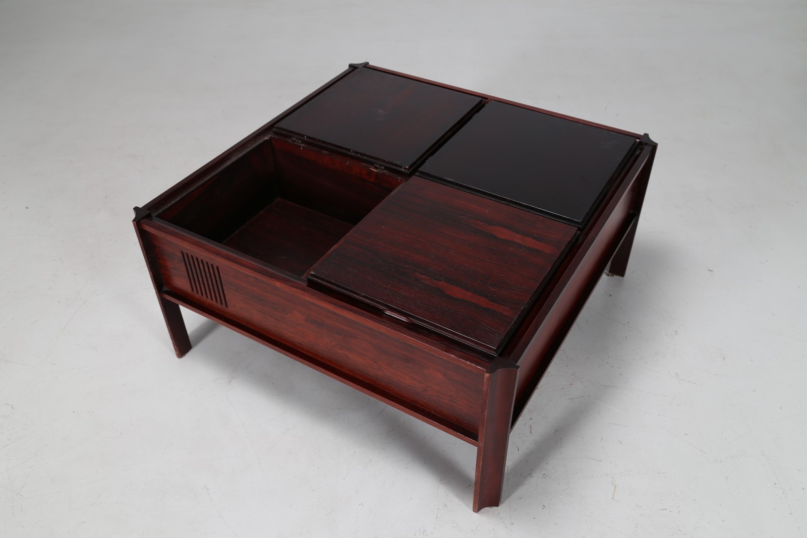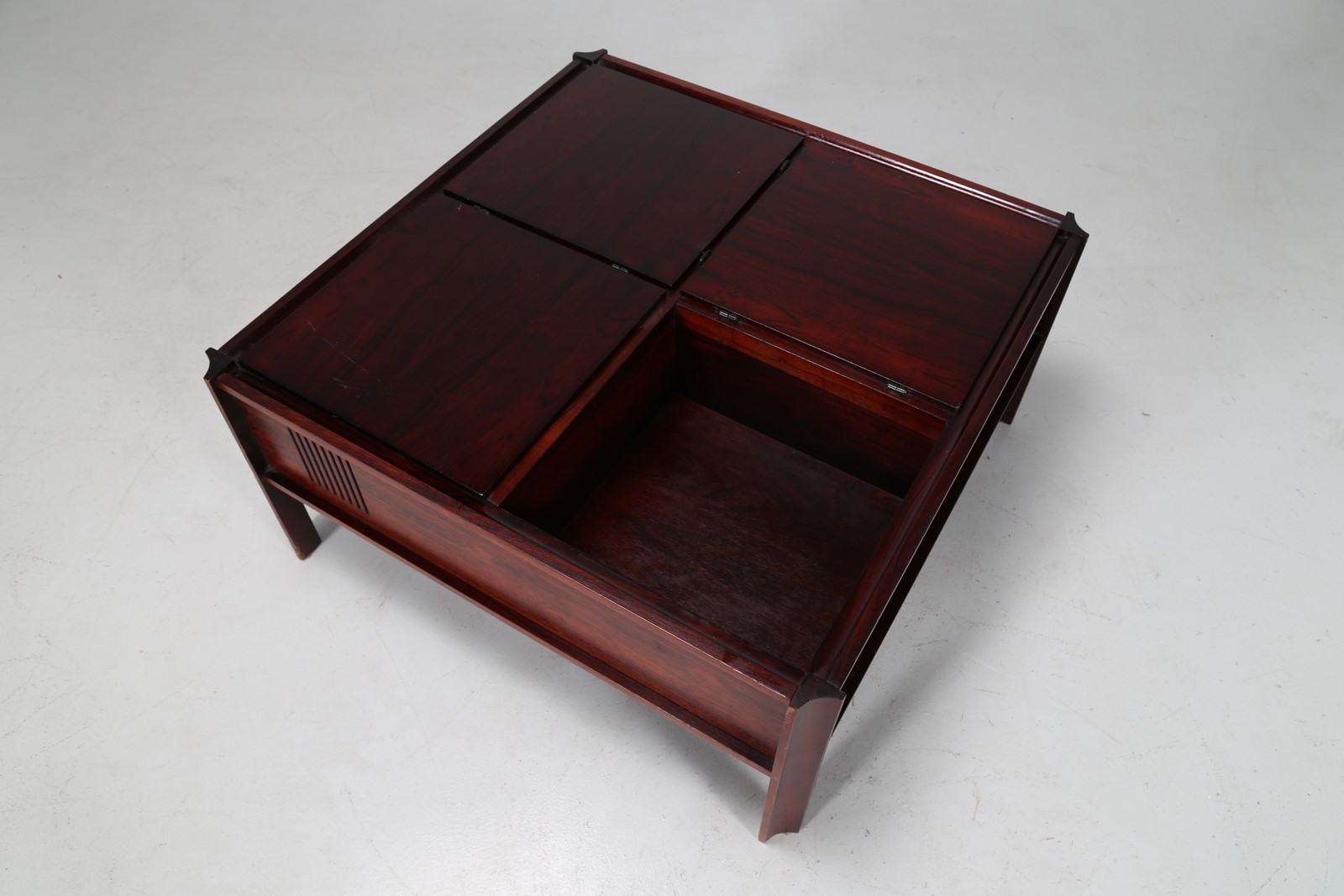 FORMANOVA Tavolino con cassetti in palissandro. -. Cm 89,00 x 42,00 x 89,00.