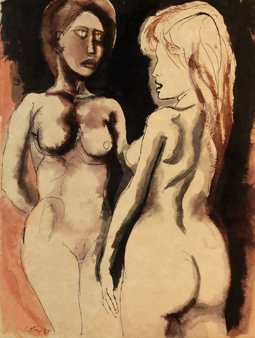Renato Guttuso (Bagheria 1911 – Roma 1987) Due figure femminili 1968 Tempera e china su carta reintelata dim. 39X51 Firmato e datata in basso a sx Opera in fase di archiviazione