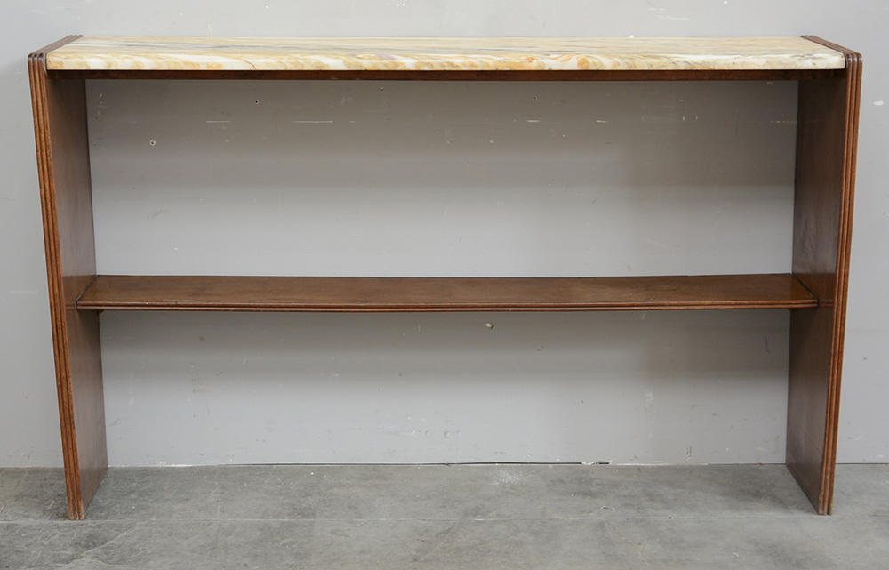 Console in legno con montanti scanalati, piano in marmo venato. Italia, anni 40 (cm 160x98x40)(difetti)
