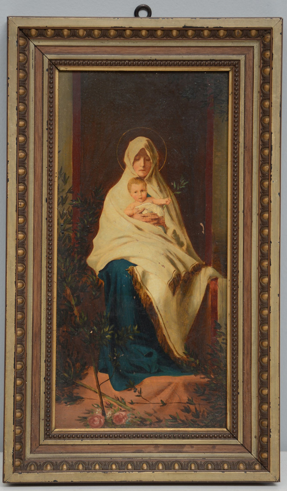 Ignoto "Madonna con Bambino" olio su tavoletta (cm33x16) In cornice (difetti)