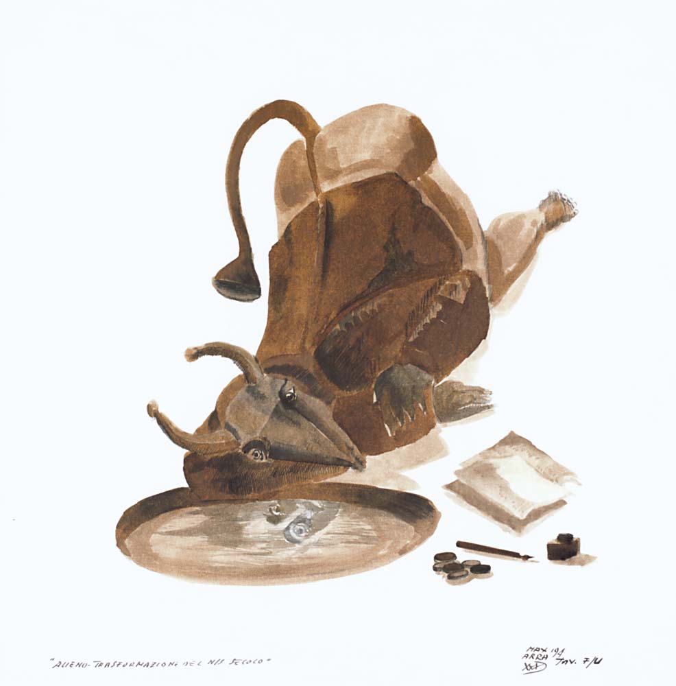 MAX MARRA Paola 28/07/1950 04 253 alieno trasformazione del n/s secolo, 1994 tecnica mista su carta cm. 38,5x38,5, firma e anno in basso a destra, etichetta dell'artista al retro.