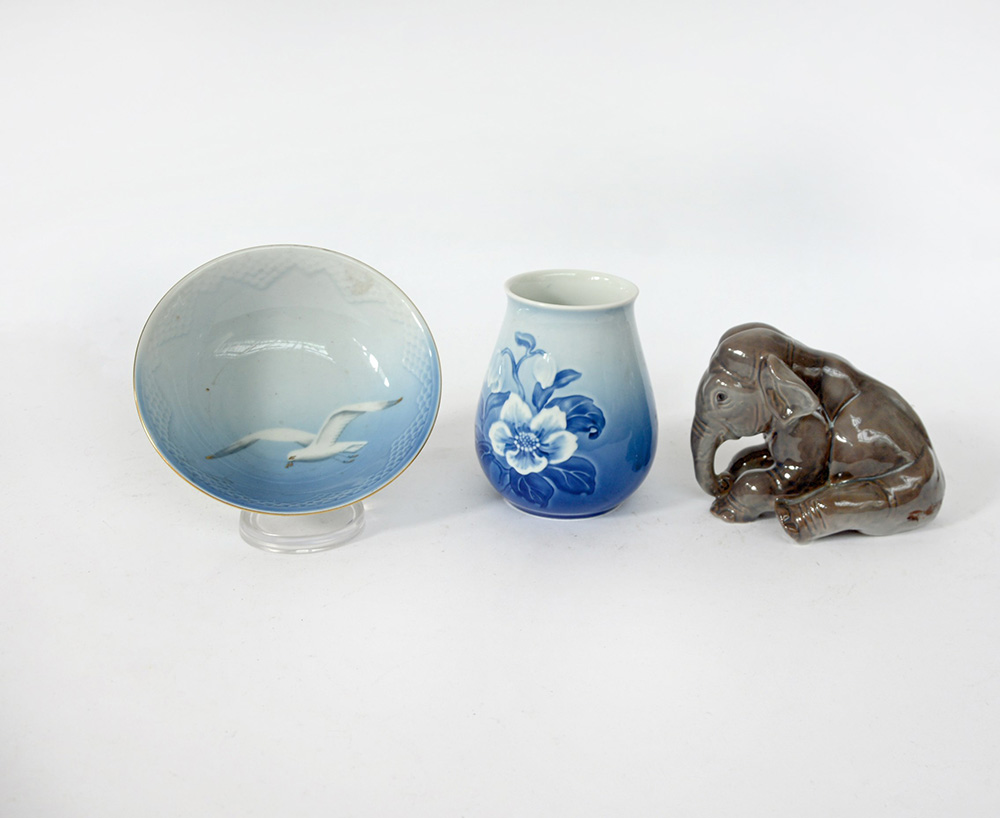 Manifattura di Copenaghen. Lotto composto da un elefante, un vaso ed un...